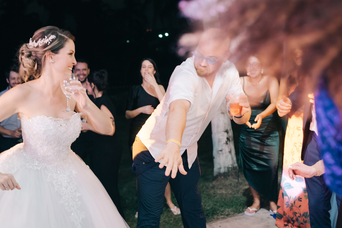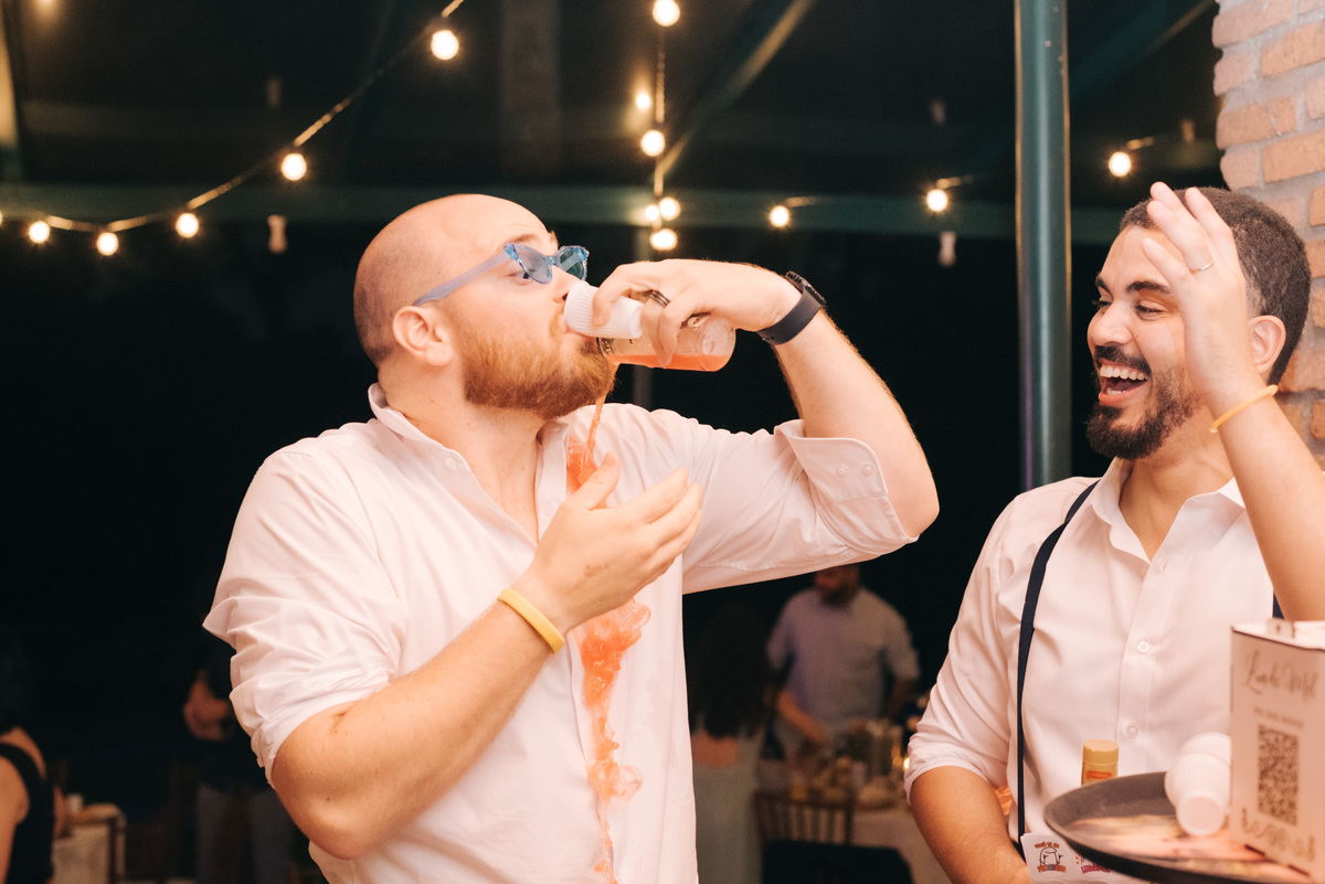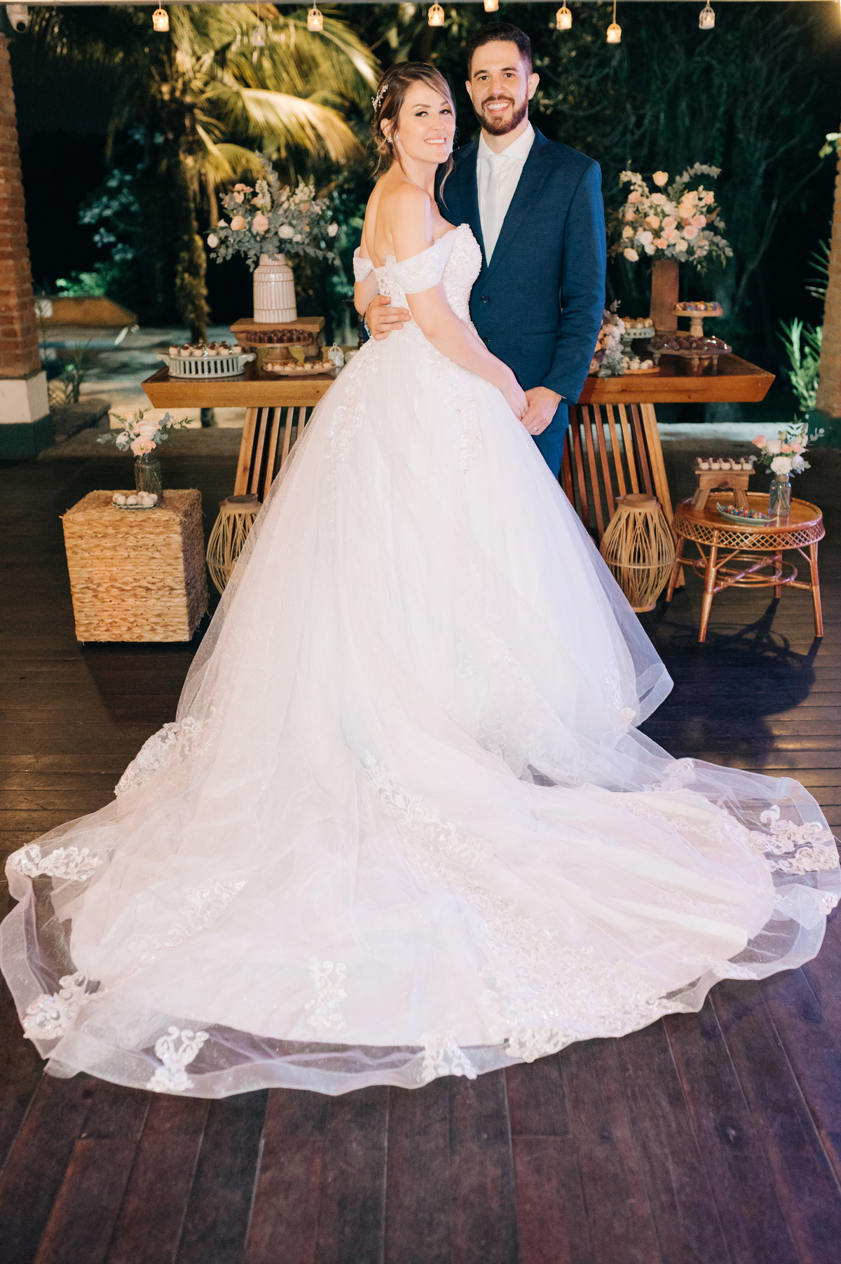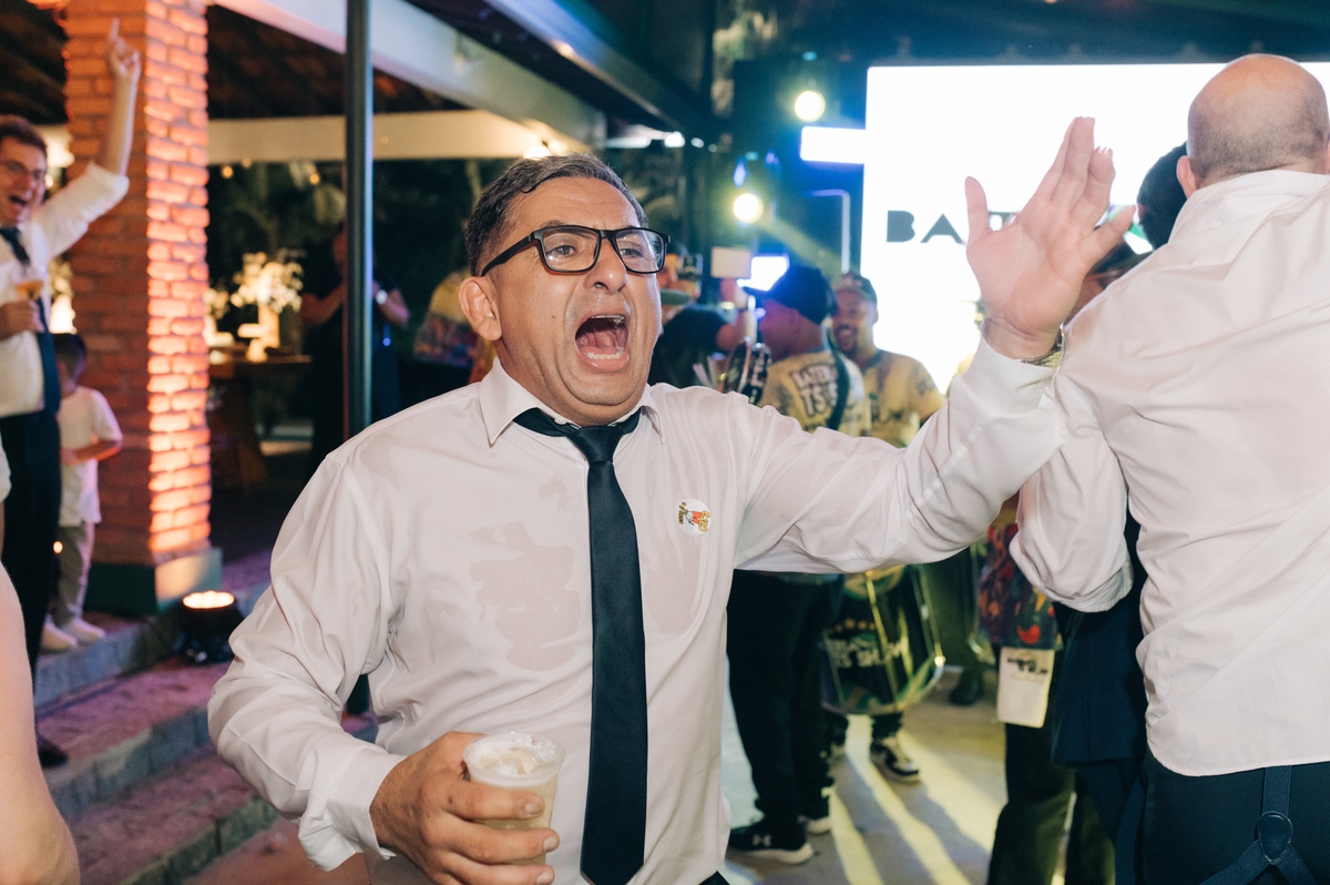 Após a cerimônia, dirigimo-nos ao Golf Clube de Santos, onde a festa começou em grande estilo. O ambiente luxuoso e os jardins bem cuidados proporcionaram o cenário ideal para uma celebração animada. Com música ao vivo que variava do sertanejo aos ritmos contagiantes da escola de samba, os convidados dançaram a noite toda, criando memórias que durarão para sempre.