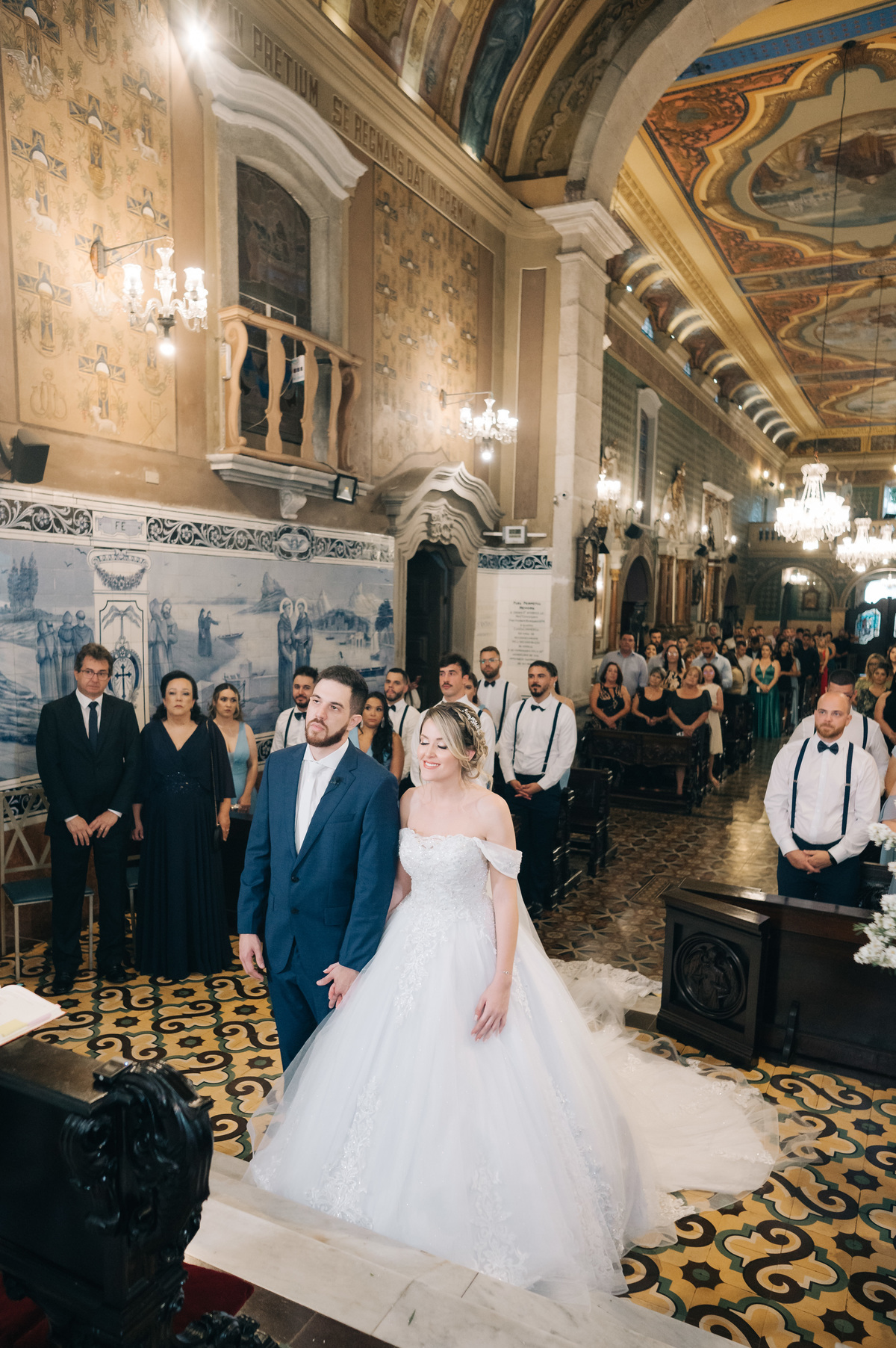 A Igreja do Valongo, com sua arquitetura imponente e história rica, foi o cenário perfeito para essa cerimônia única. Com apenas esse casamento marcado para o dia, a atmosfera estava carregada de emoção e significado. Capturamos cada momento solene e emocionante, desde a entrada triunfal da noiva até a troca de votos sinceros e o momento sublime do "sim".