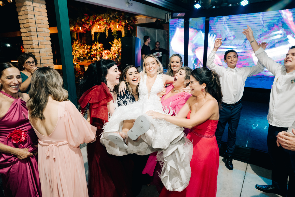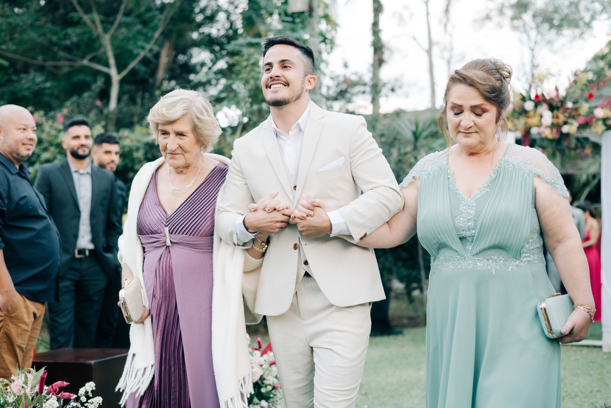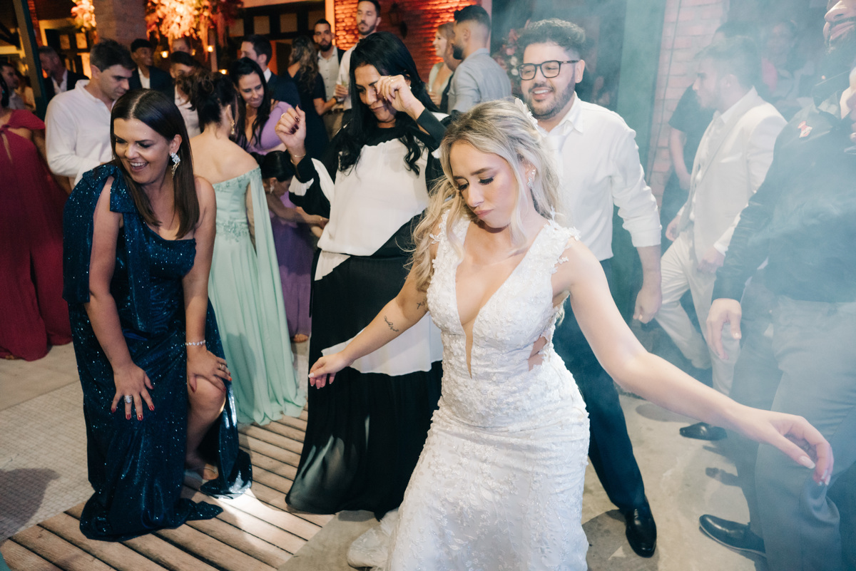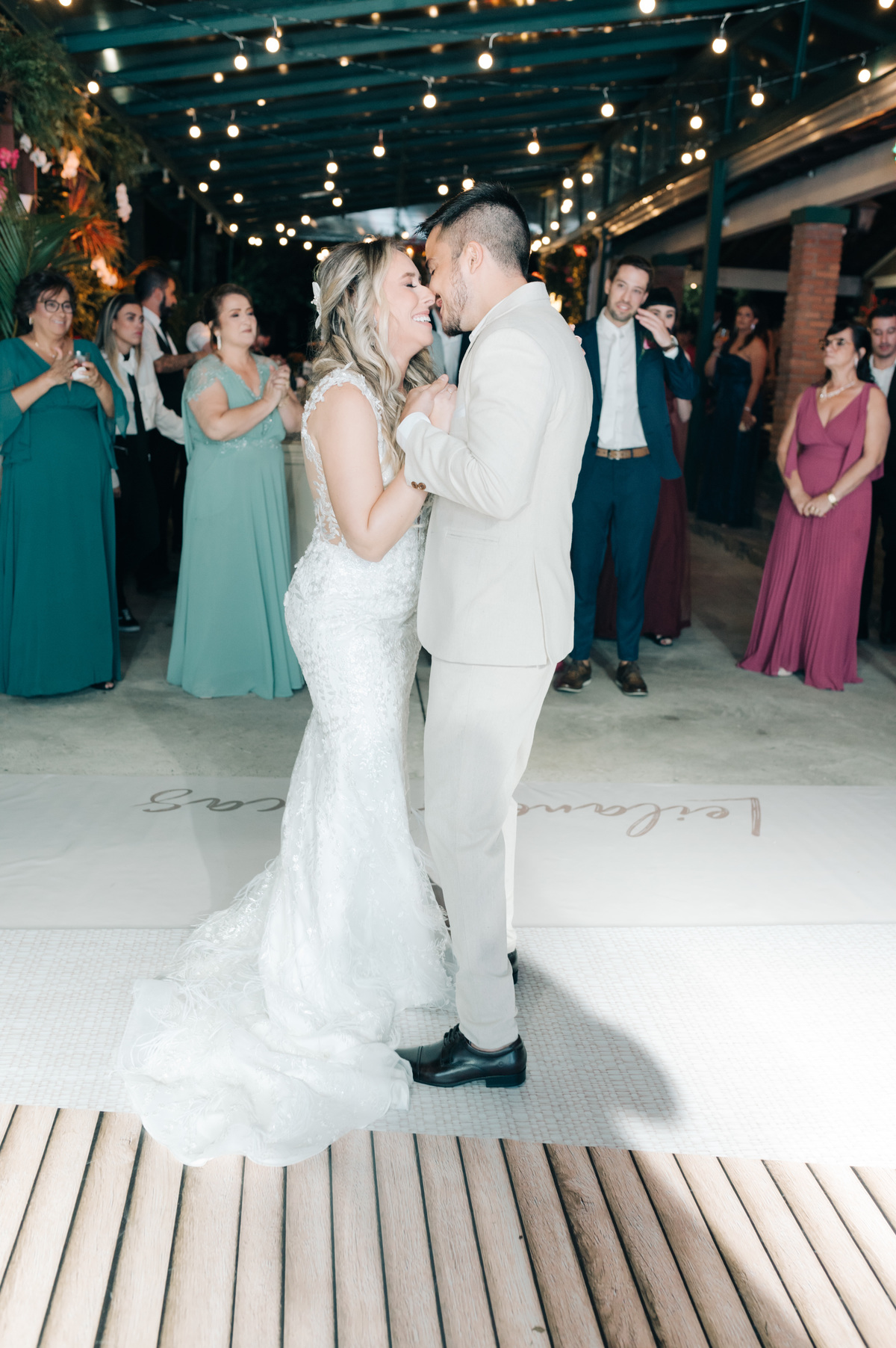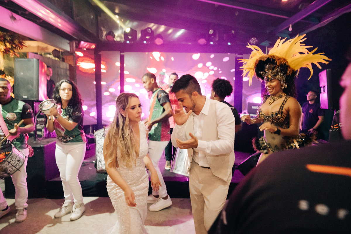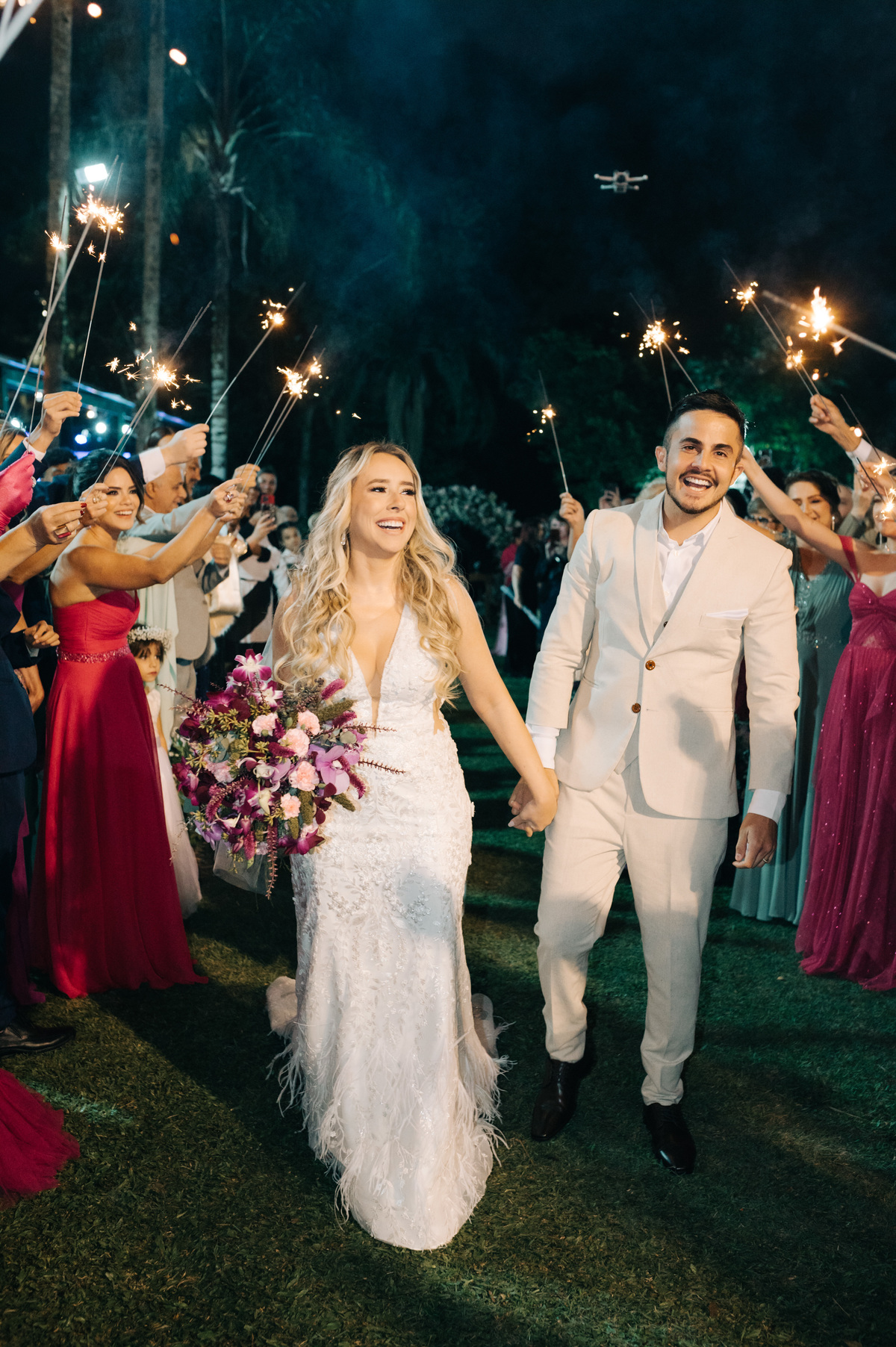À medida que a cerimônia avançava e o dia se transformava em noite, o local ganhava uma nova atmosfera. Luzes suaves foram acesas, criando um ambiente acolhedor e íntimo para a festa que estava por vir. A saída dos noivos, agora marido e mulher, ocorreu já ao anoitecer, sob um céu estrelado que parecia celebrar a união que tinha acabado de acontecer.