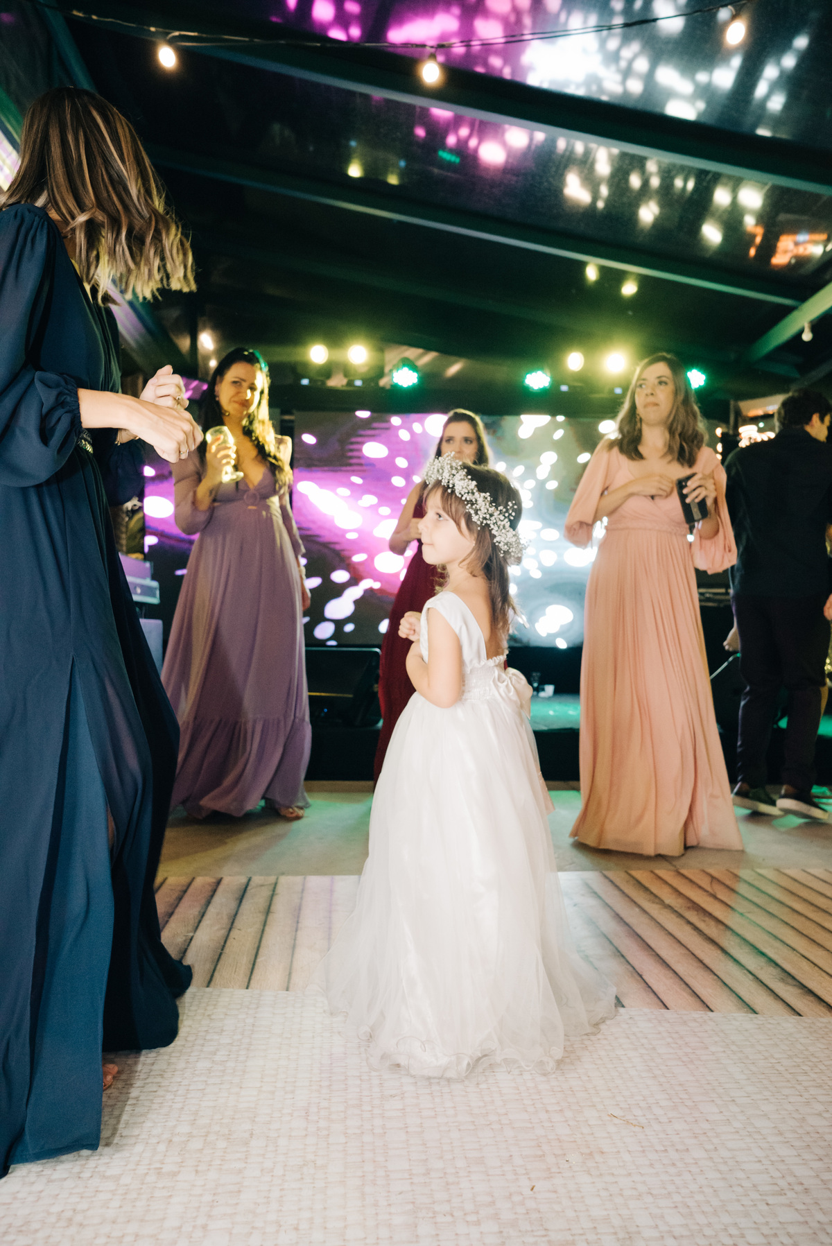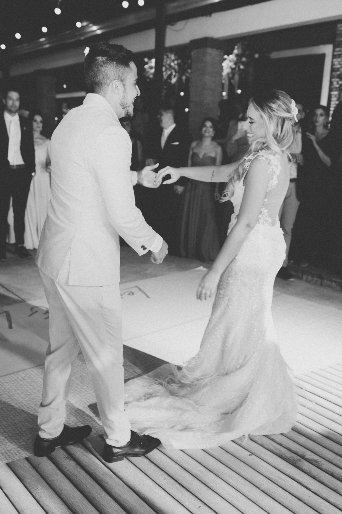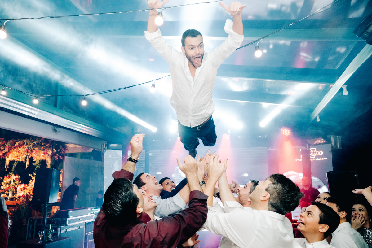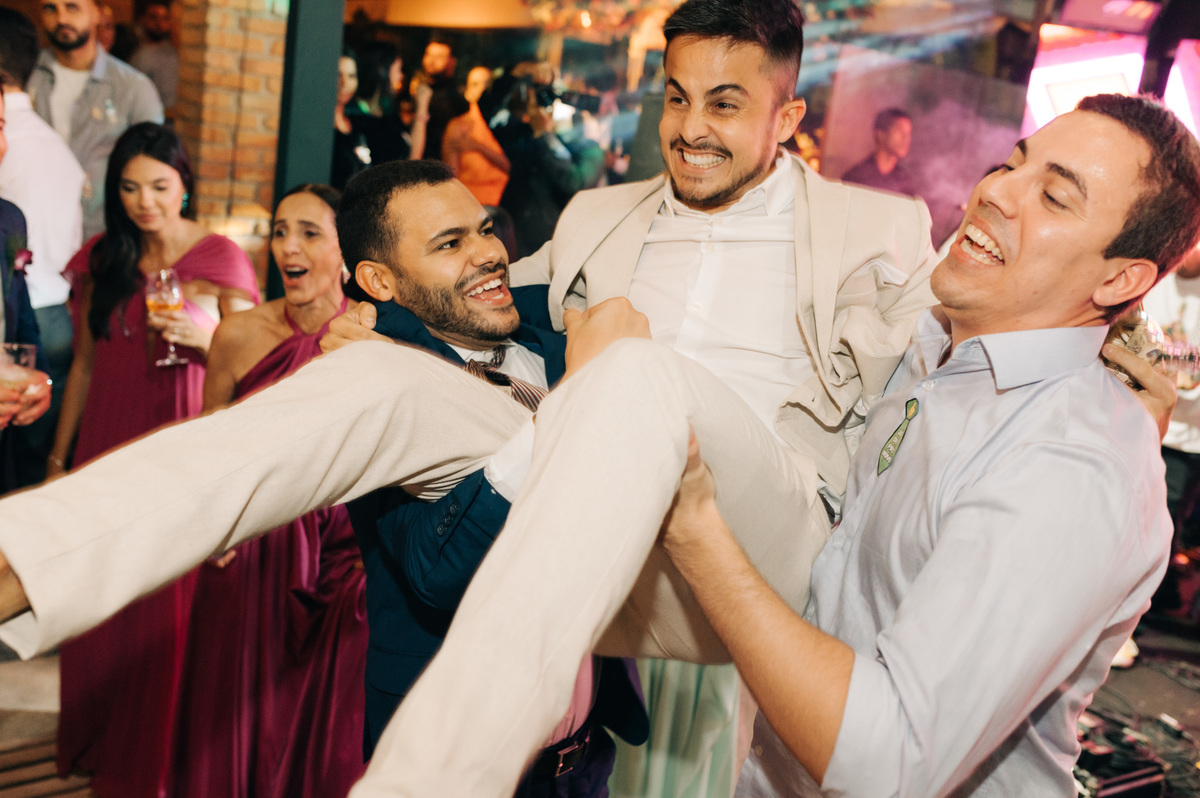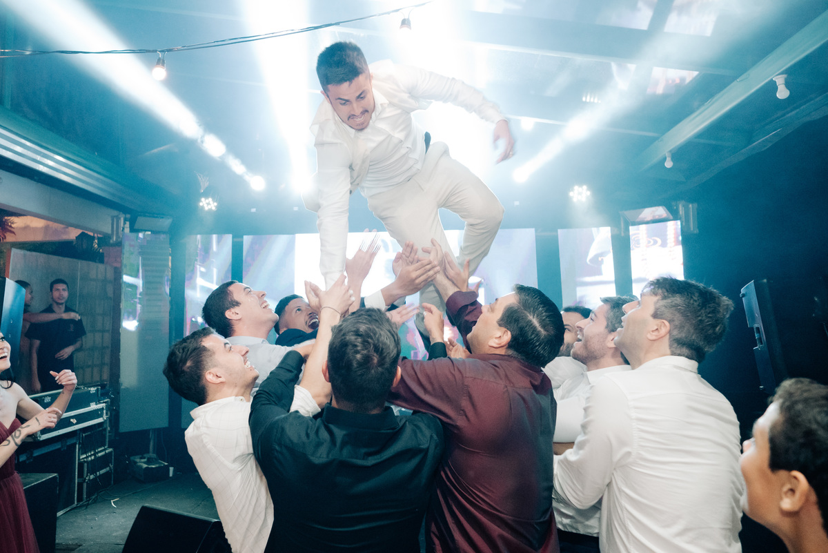 À medida que a cerimônia avançava e o dia se transformava em noite, o local ganhava uma nova atmosfera. Luzes suaves foram acesas, criando um ambiente acolhedor e íntimo para a festa que estava por vir. A saída dos noivos, agora marido e mulher, ocorreu já ao anoitecer, sob um céu estrelado que parecia celebrar a união que tinha acabado de acontecer.