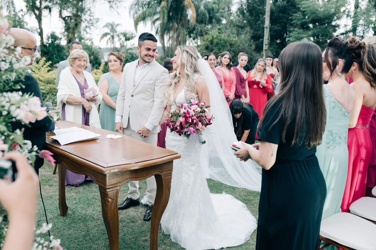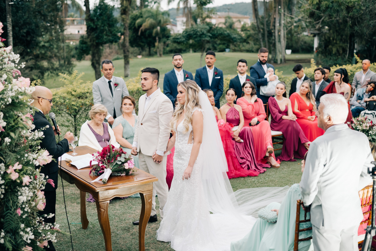 A cerimônia em si foi um testemunho do amor profundo e genuíno. Com votos sinceros e palavras cheias de significado, eles selaram seu compromisso diante de amigos e familiares emocionados. O entardecer que serviu como pano de fundo não apenas emoldurou o momento, mas também serviu como uma metáfora da jornada que eles agora iniciavam juntos: uma vida de altos e baixos, de luz e sombras, mas sempre com o amor brilhando intensamente.
