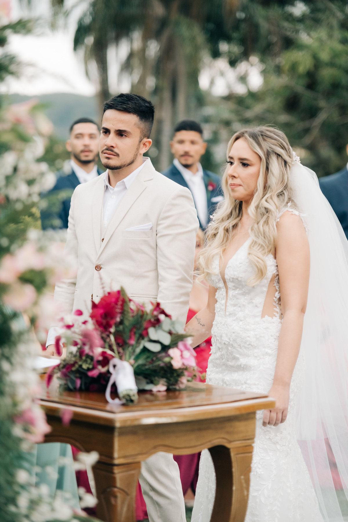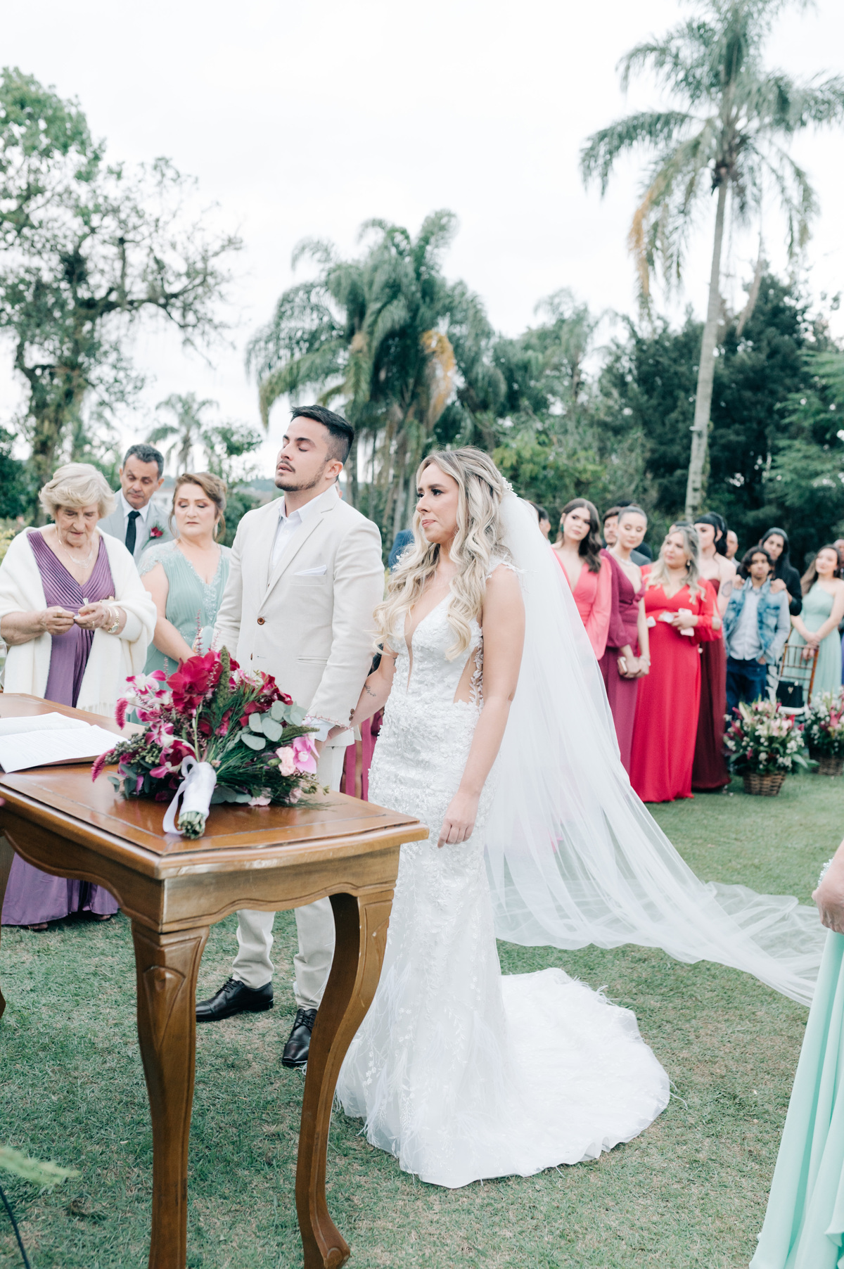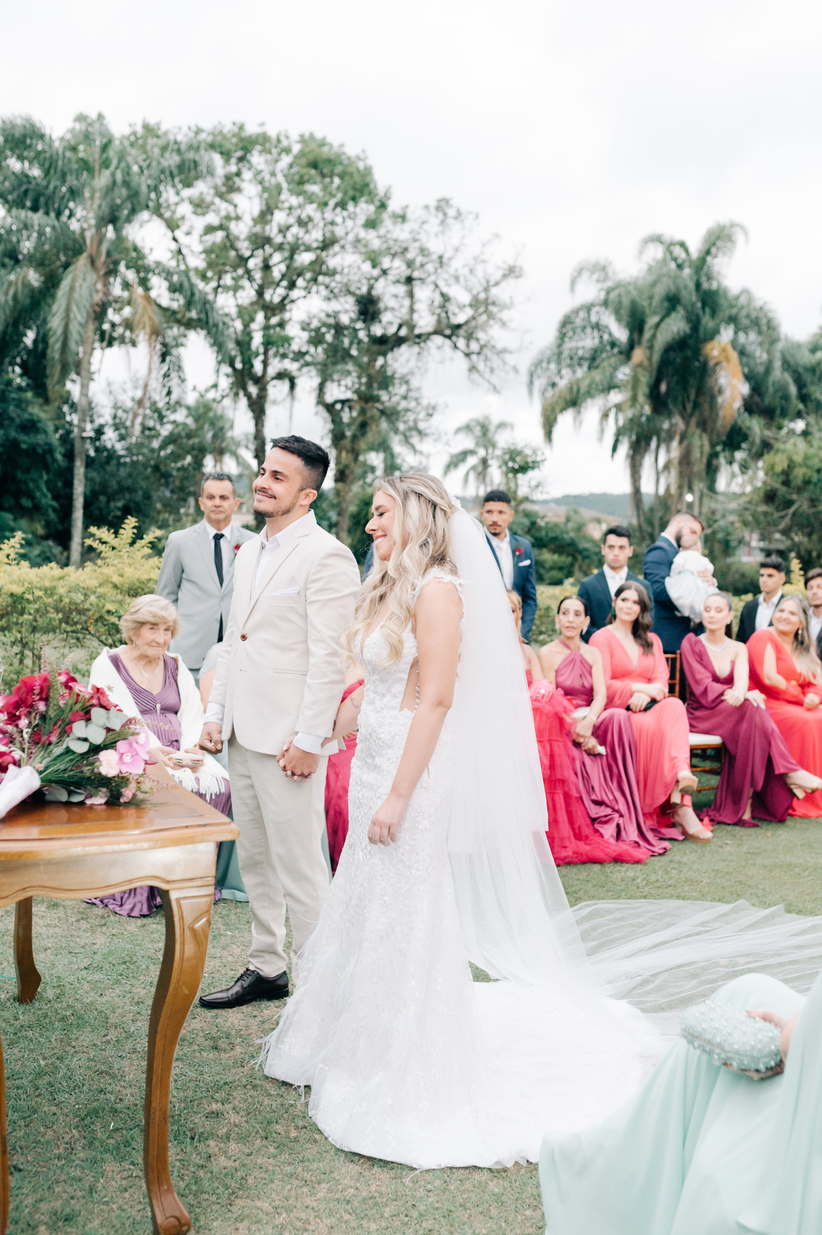 Que o entardecer daquele dia continue a inspirar os noivos em sua jornada conjunta, lembrando-lhes que o amor é como o céu em constante mudança: sempre presente, sempre belo, independentemente das circunstâncias.