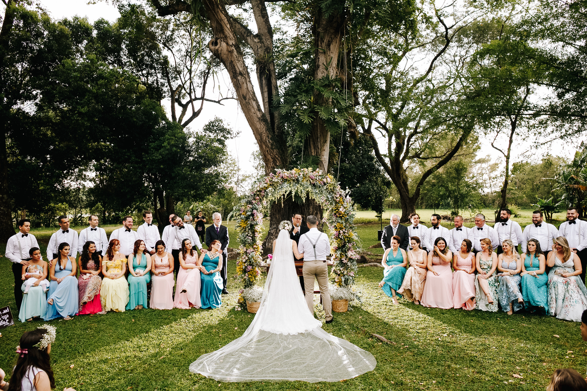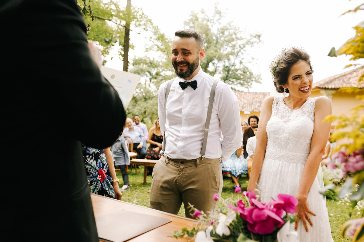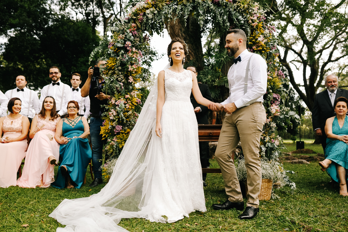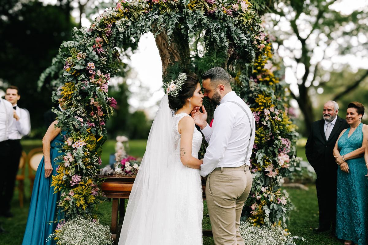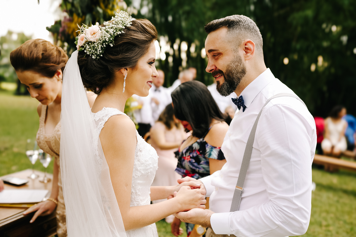 Laís e Dan optaram por uma cerimônia ao pôr do sol, rodeados por familiares e amigos. A luz dourada daquele fim de tarde deu um toque mágico às fotos, ressaltando o sorriso da noiva e a emoção nos olhos do noivo. Cada troca de olhares, cada gesto, foi registrado de forma espontânea, sem poses forçadas — exatamente como eles queriam.
