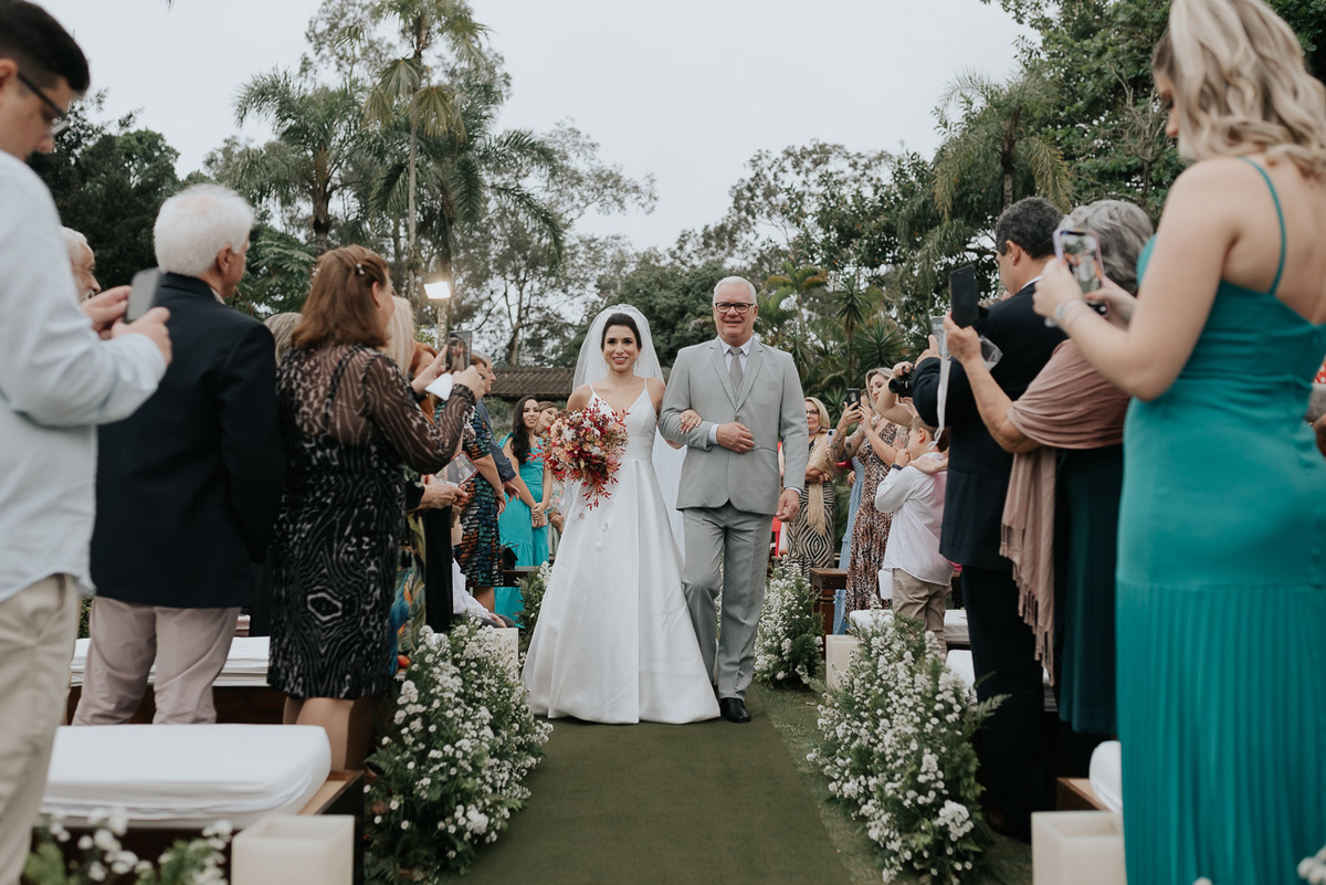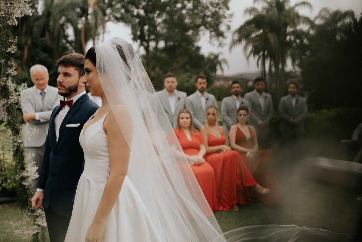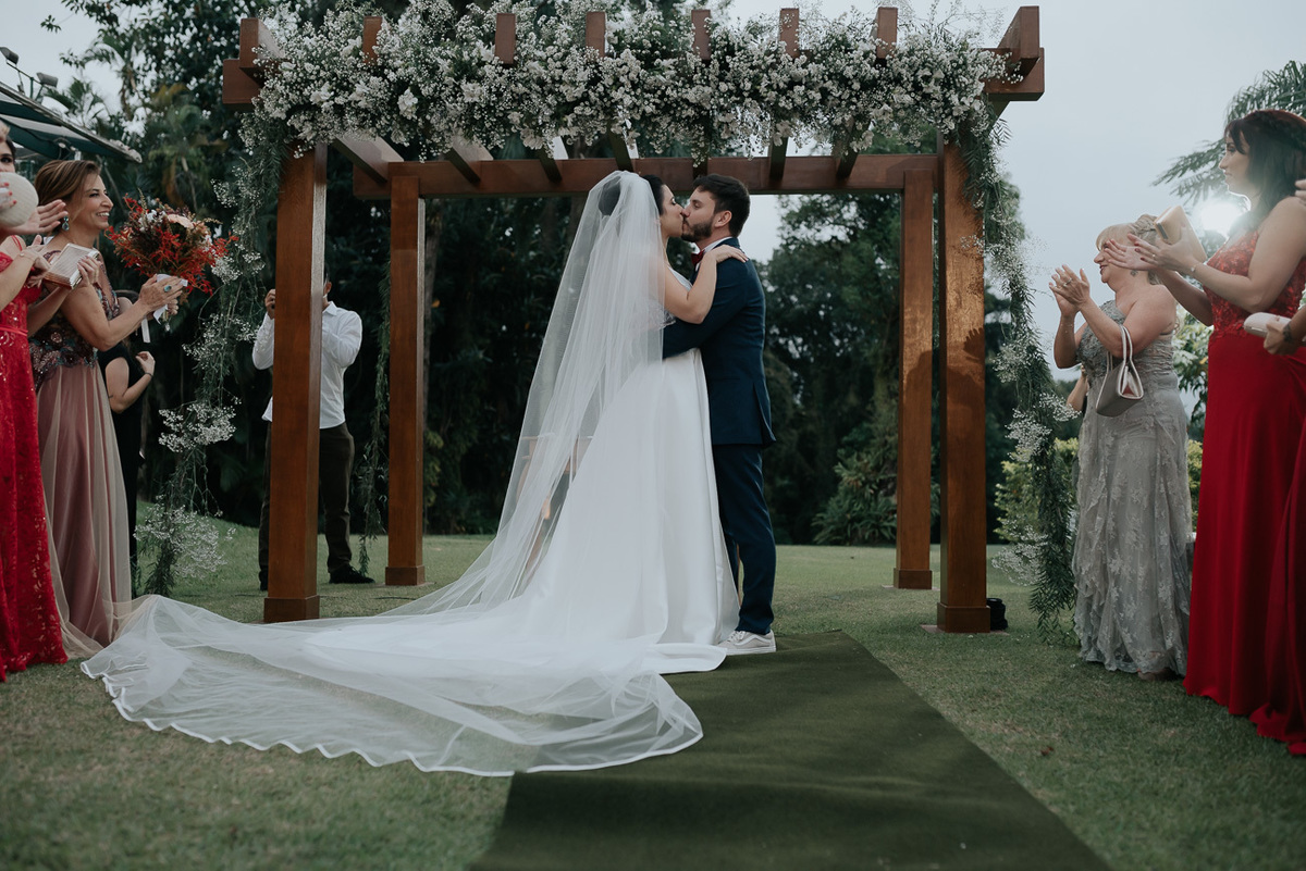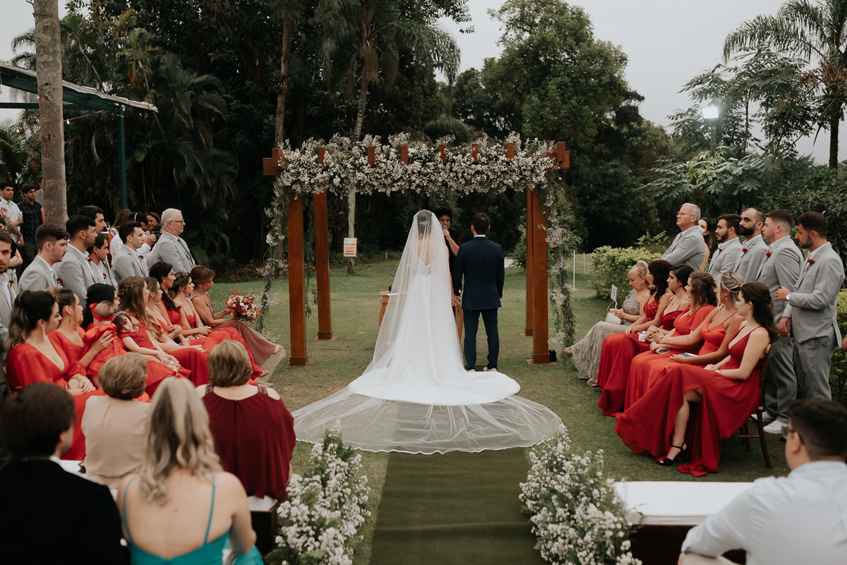A Bia e o Gui escolheram o Golf Clube em São Vicente - SP para a celebração do casamento. O Golf é um campo lindo rodeado de muitas árvores, perfeito para celebrar um casamento.
