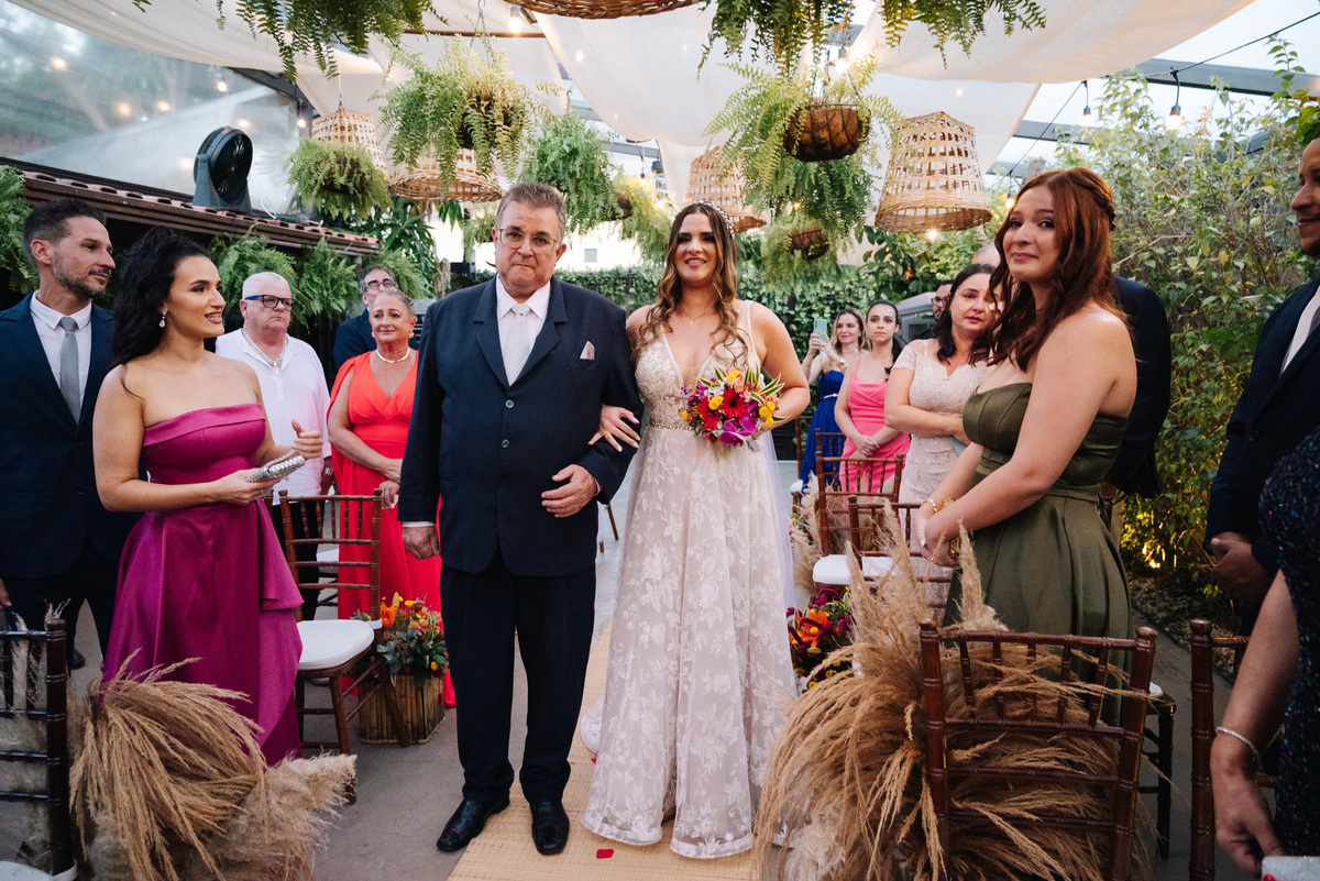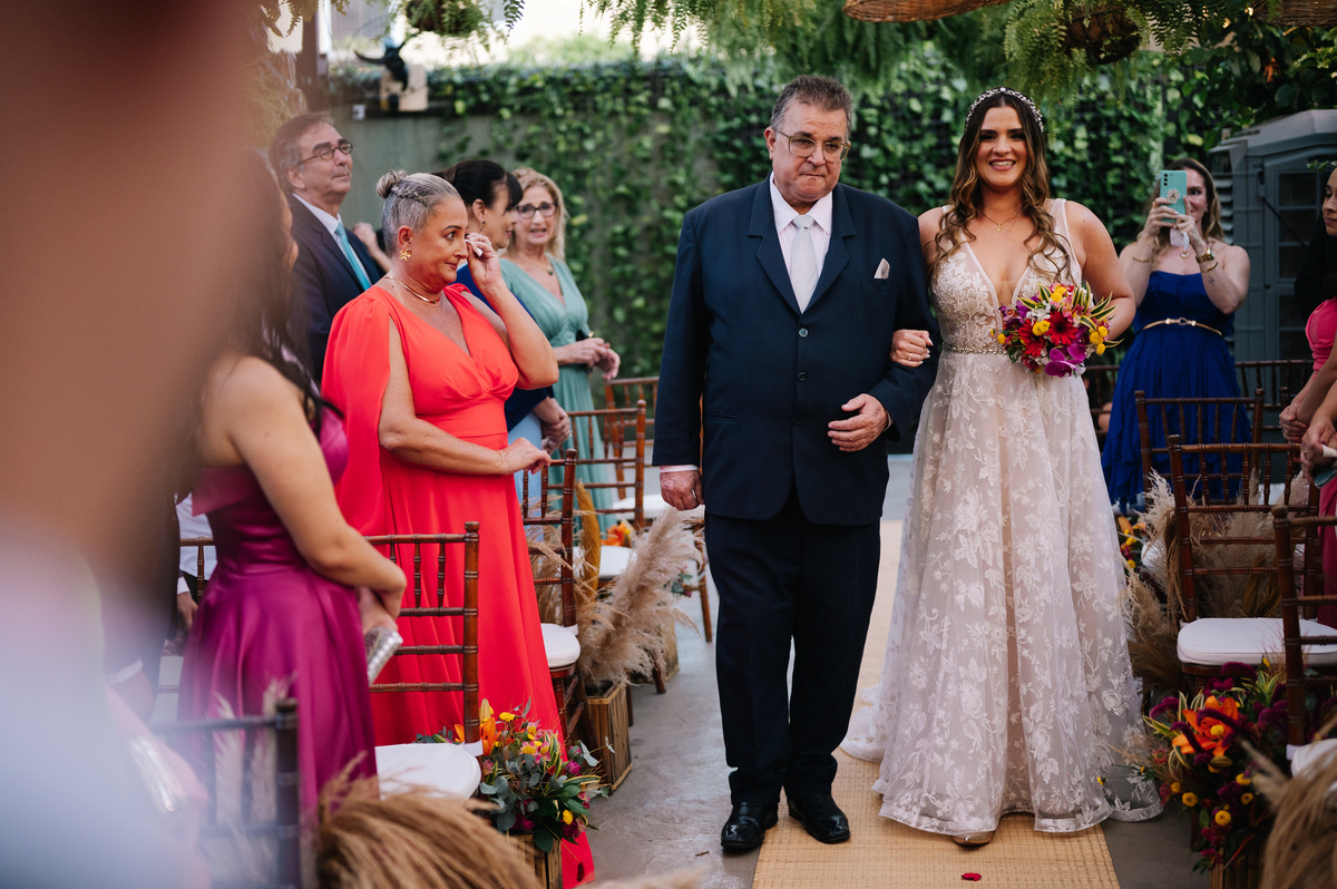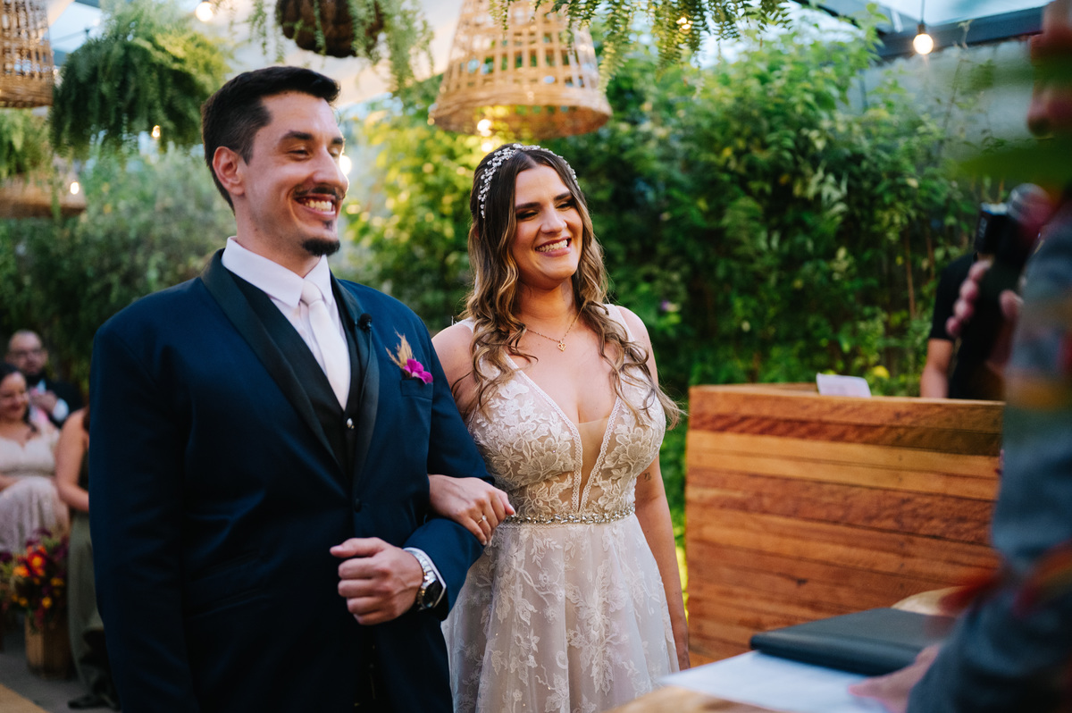 O casamento da Carol e do Gui foi a definição perfeita de um mini wedding cheio de personalidade, amor e aquela vibe praiana irresistível. O cenário escolhido para a celebração foi o Quintal da Bella, no Guarujá, um espaço rústico e acolhedor que combinou perfeitamente com a energia leve e descontraída do casal.
