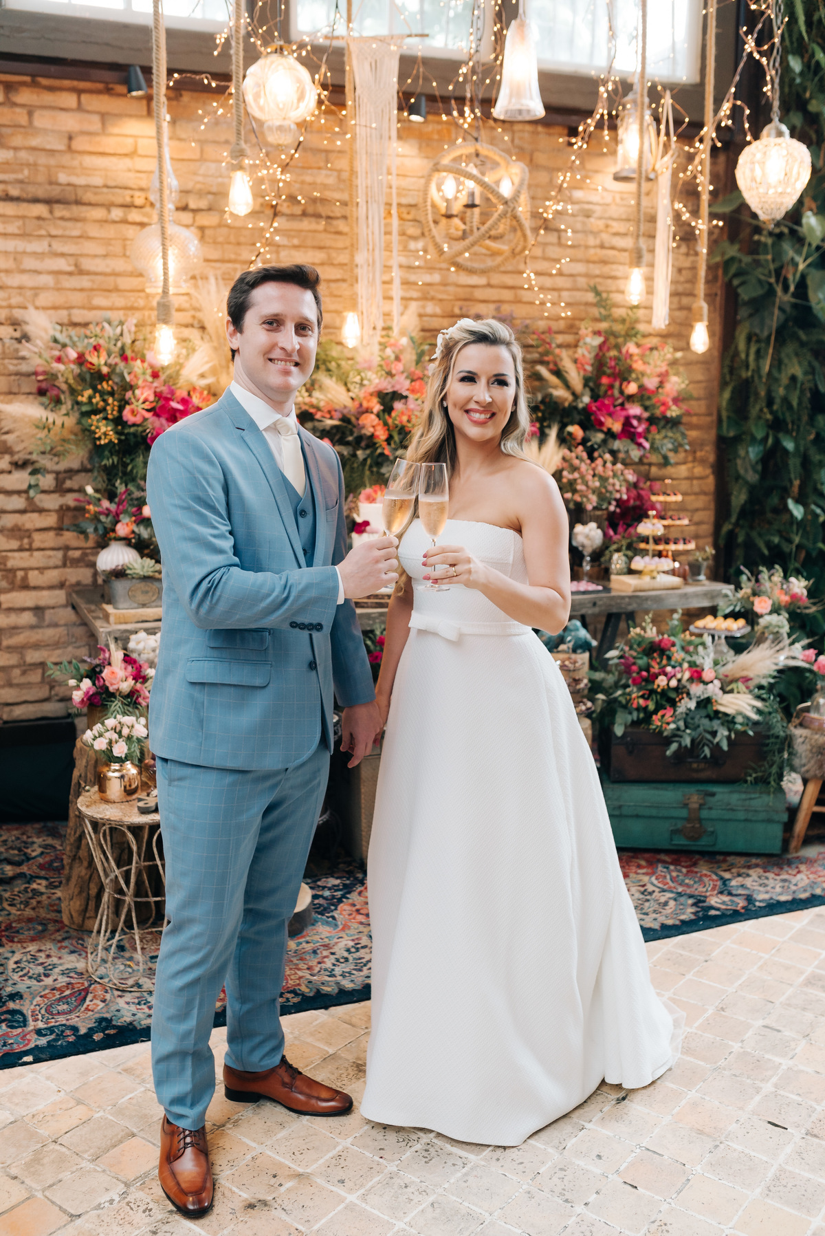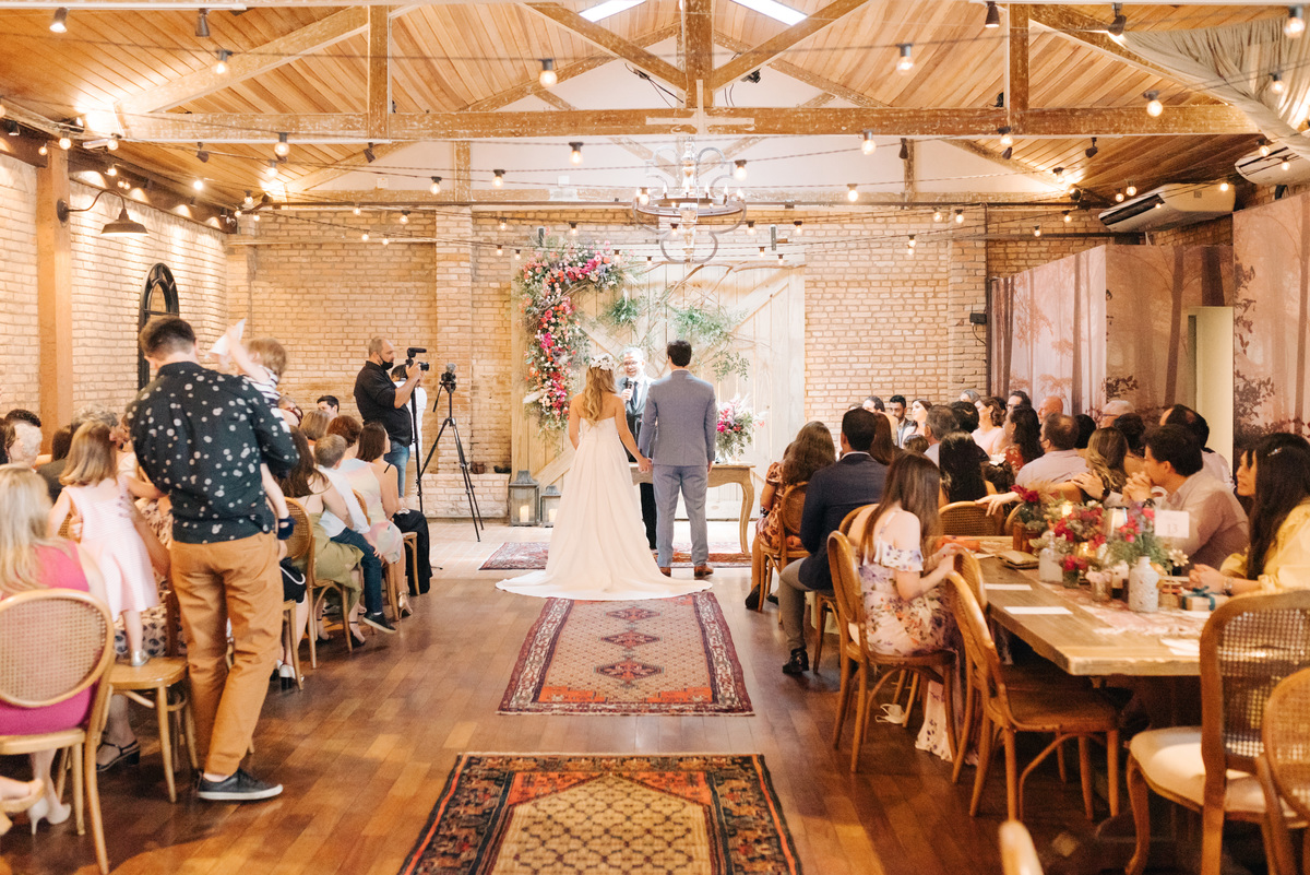 O Celeiro quintal foi o local escolhido pelo casal para celebrar tanto a cerimônia como a festa, o espaço do grupo quintal esta localizado em São Paulo - capital. O grupo quintal conta com diversos espaços elegantes e charmosos que fazem total diferença.