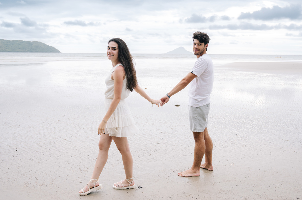 O céu nublado em Juquehy, em São Sebastião, trouxe um clima especial para o momento inesquecível em que João pediu Mariana em casamento. Sem grandes produções, apenas com o cenário natural e o amor que os une, João se ajoelhou na areia e fez a pergunta que mudou suas vidas: “Quer casar comigo?”.