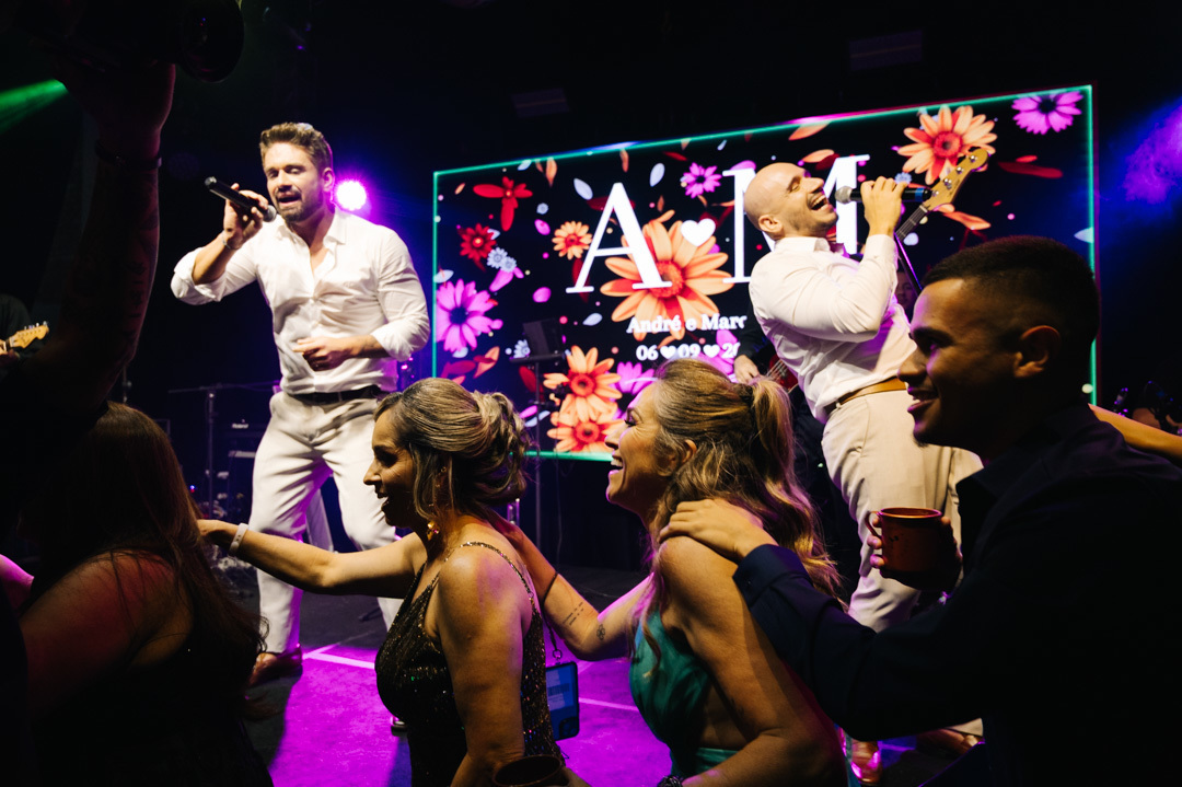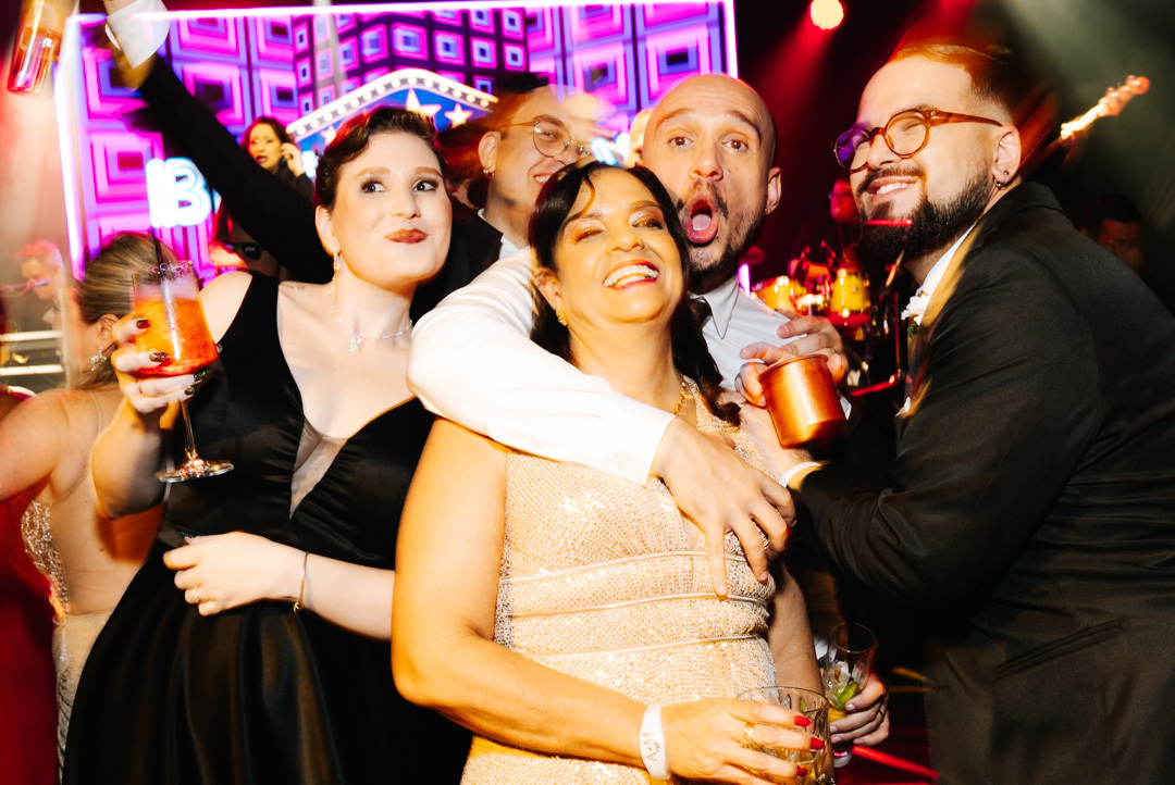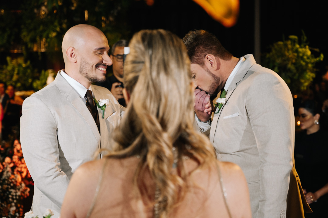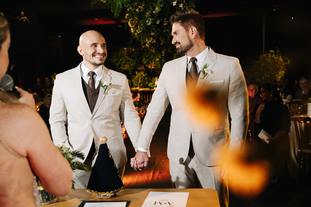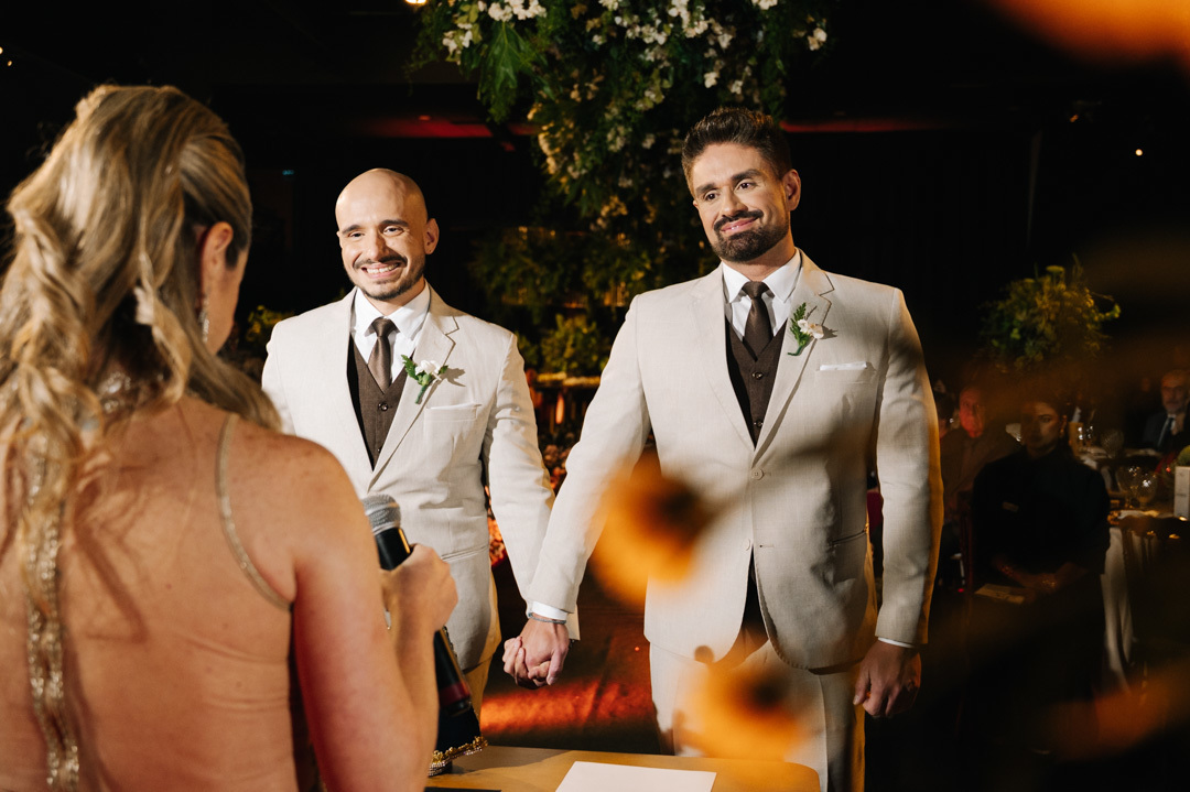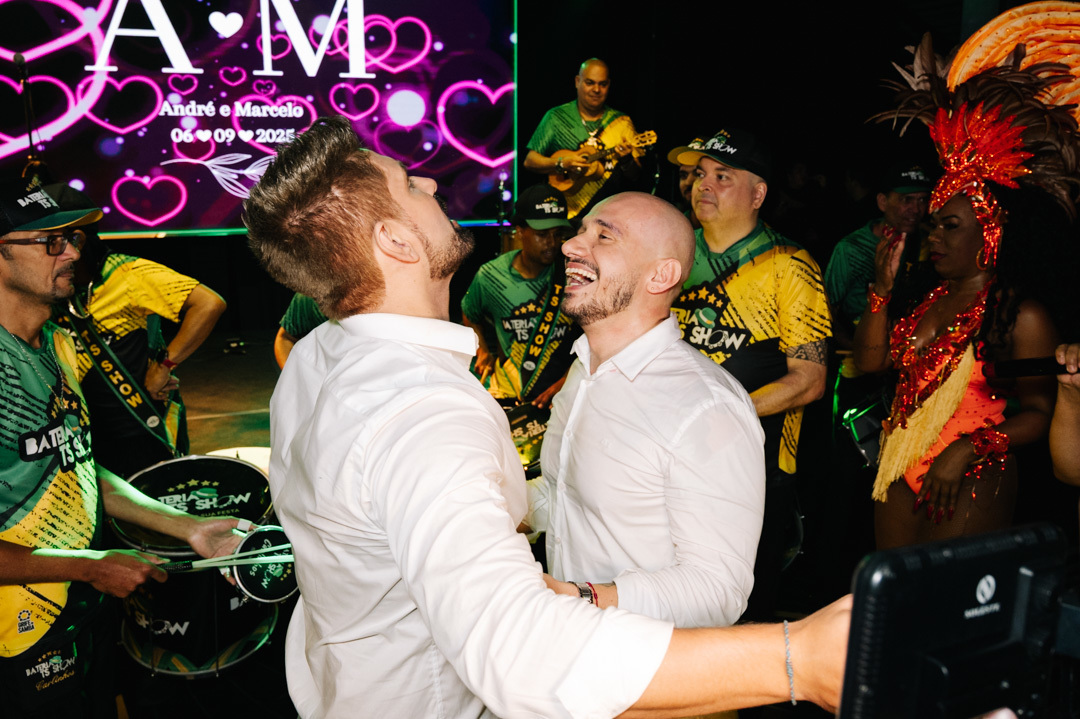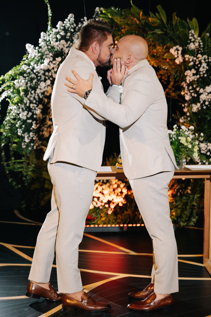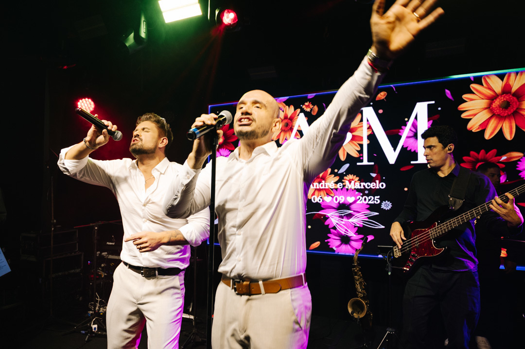 A cerimônia foi marcada por discursos emocionantes, troca de votos carregada de significado, e uma pista de dança que celebrou o amor com alegria e liberdade. A iluminação suave, o som ambiente e os sorrisos cúmplices tornaram a noite absolutamente inesquecível.