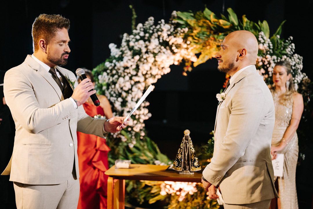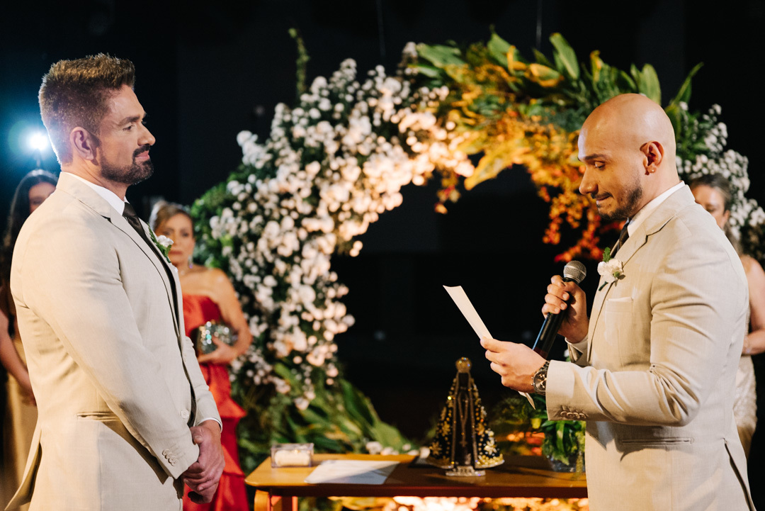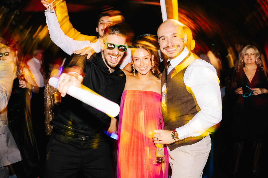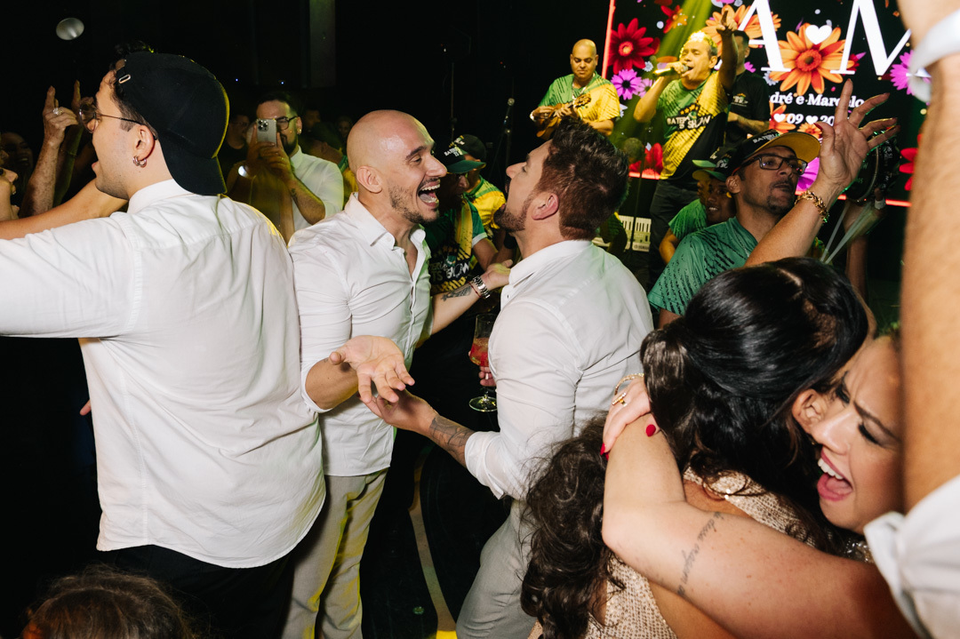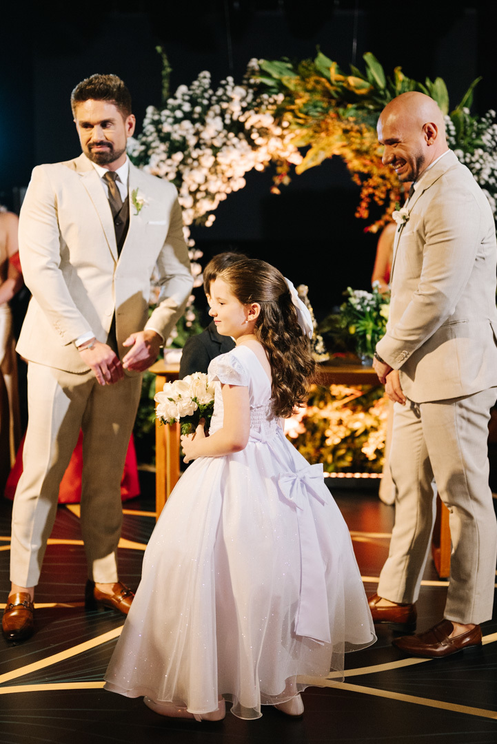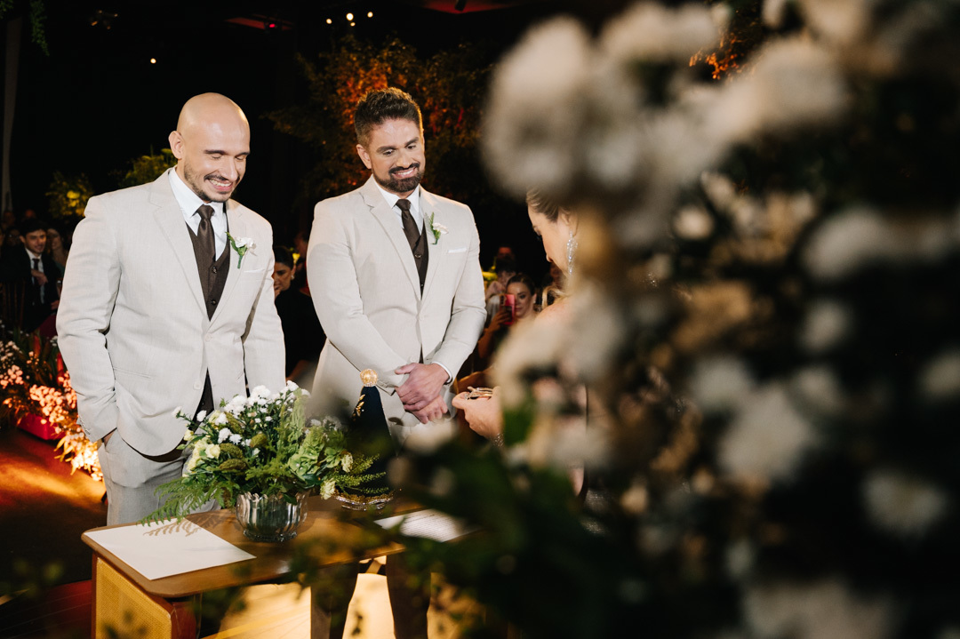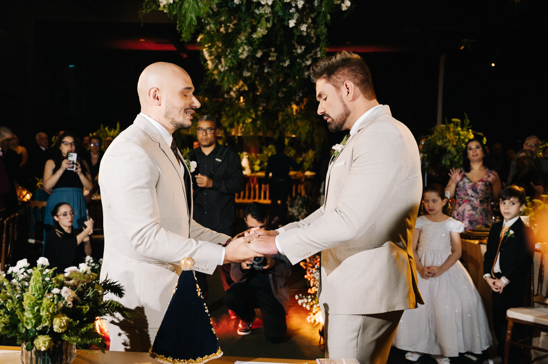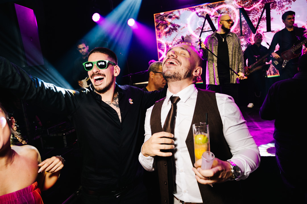 A cerimônia foi marcada por discursos emocionantes, troca de votos carregada de significado, e uma pista de dança que celebrou o amor com alegria e liberdade. A iluminação suave, o som ambiente e os sorrisos cúmplices tornaram a noite absolutamente inesquecível.