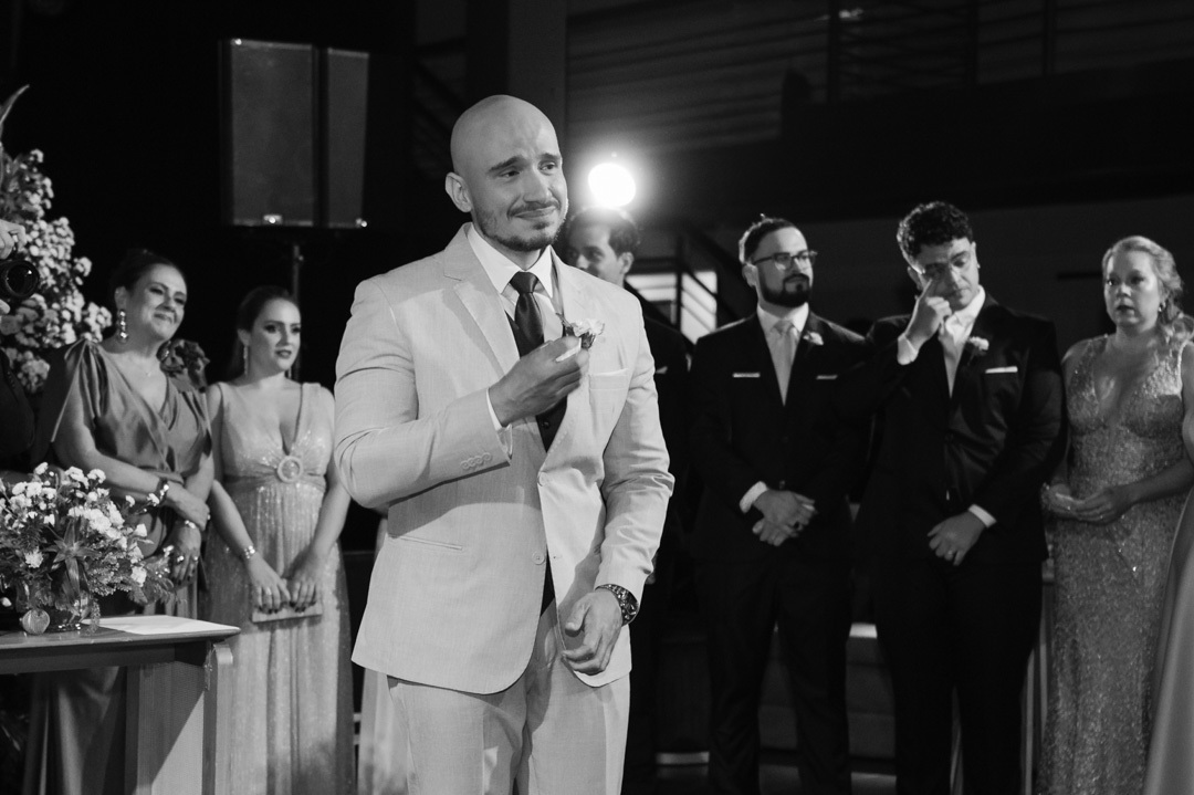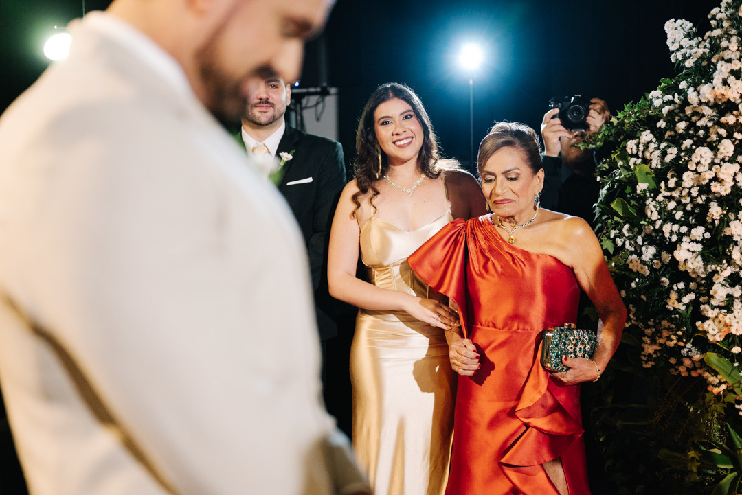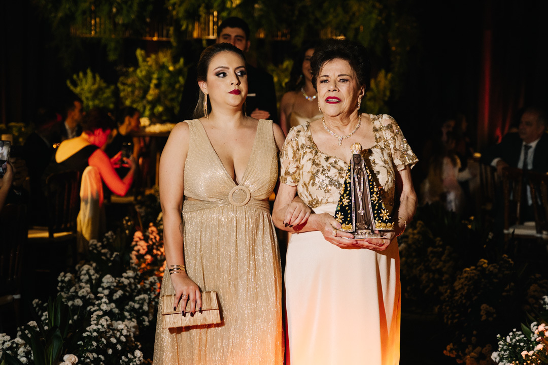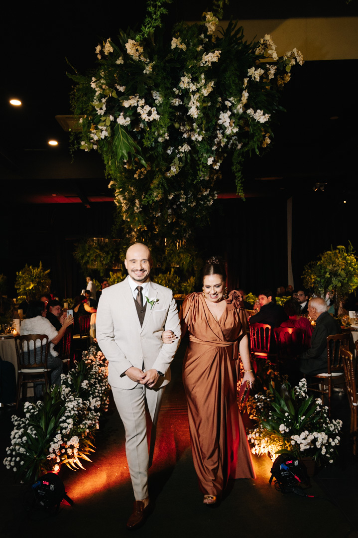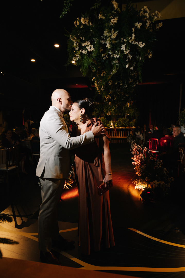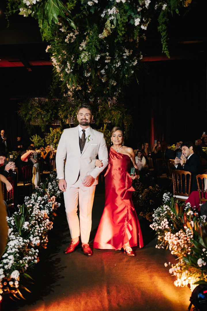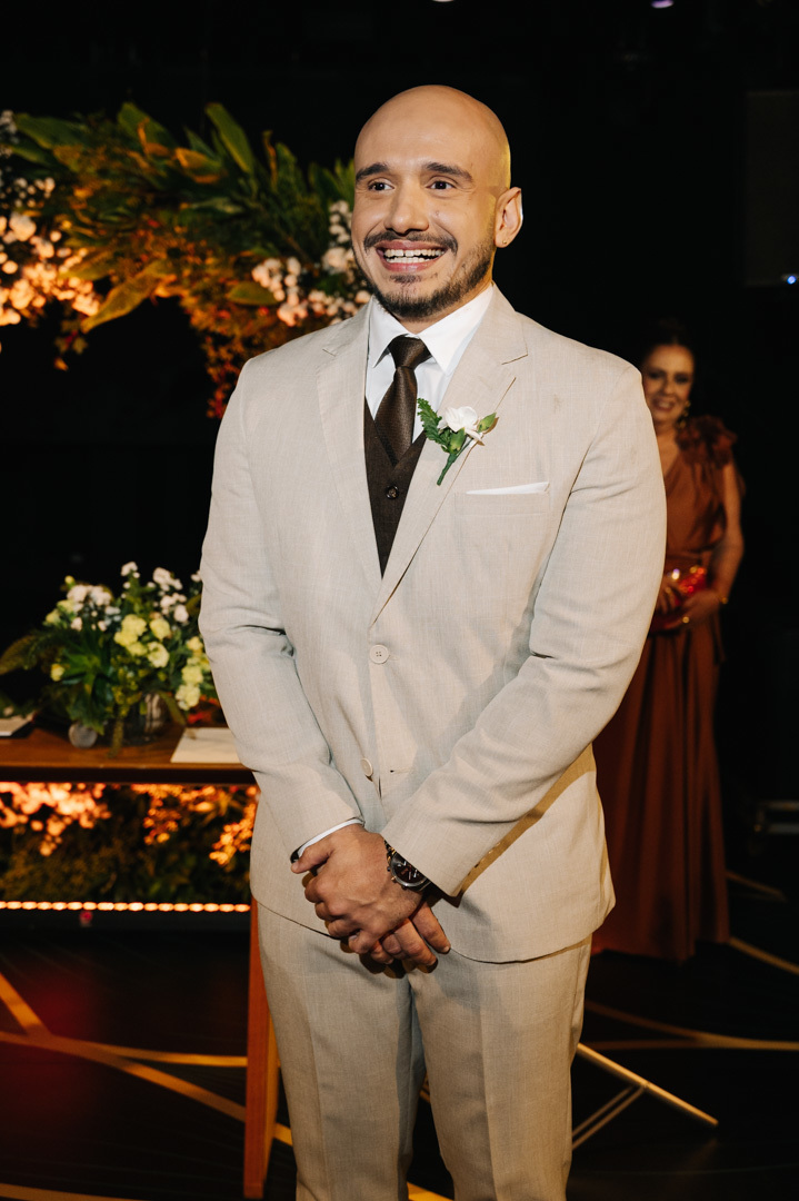 O casamento aconteceu à noite, em meio à arquitetura charmosa das ruas históricas de Santos, que deram um clima cinematográfico à cerimônia. O DOCKS, conhecido por sua atmosfera industrial-chique e iluminação acolhedora, foi o cenário ideal para um momento tão íntimo e poderoso.