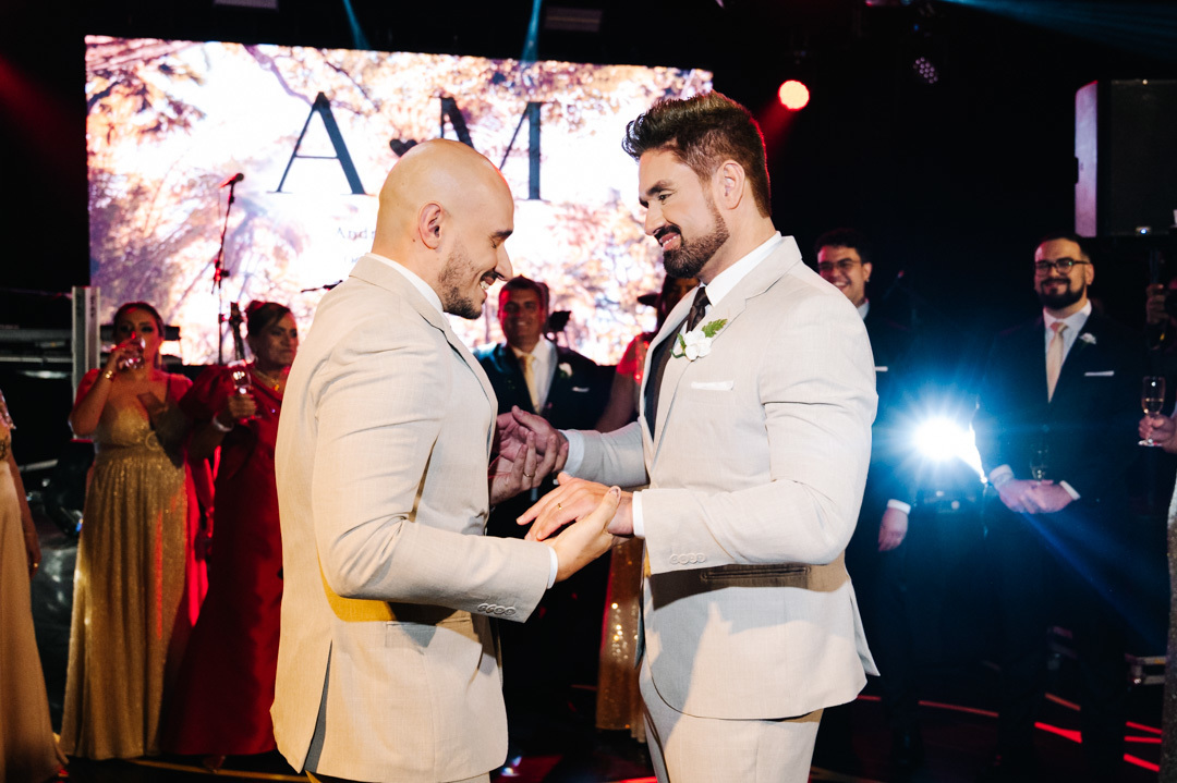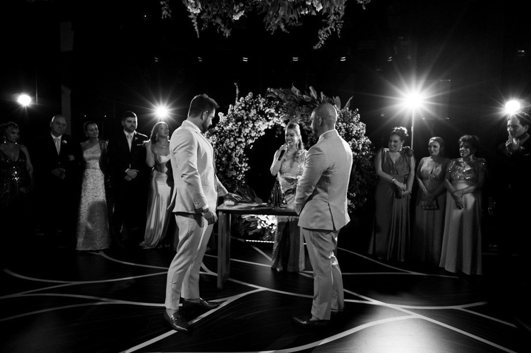 Em uma noite cheia de emoção, luzes e amor, tive a honra de fotografar um casamento homoafetivo incrível realizado no coração do centro histórico de Santos, no espaço DOCKS – um local urbano e sofisticado, perfeito para quem busca uma celebração moderna e autêntica.