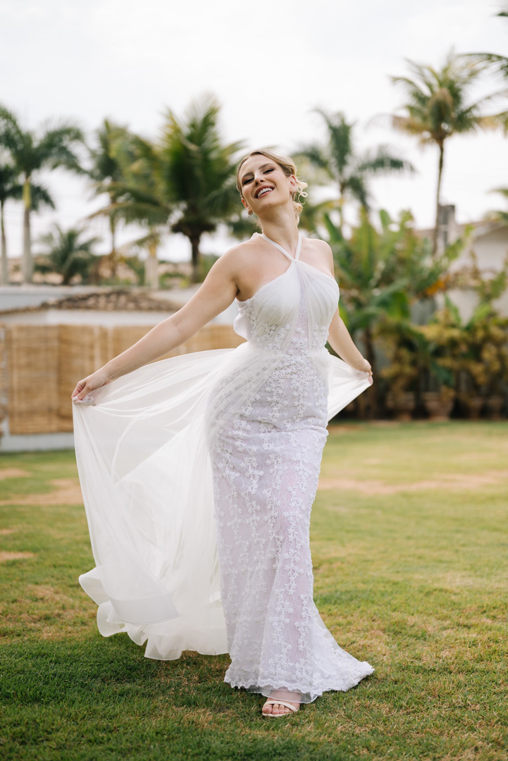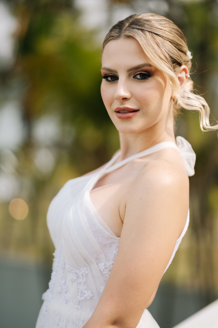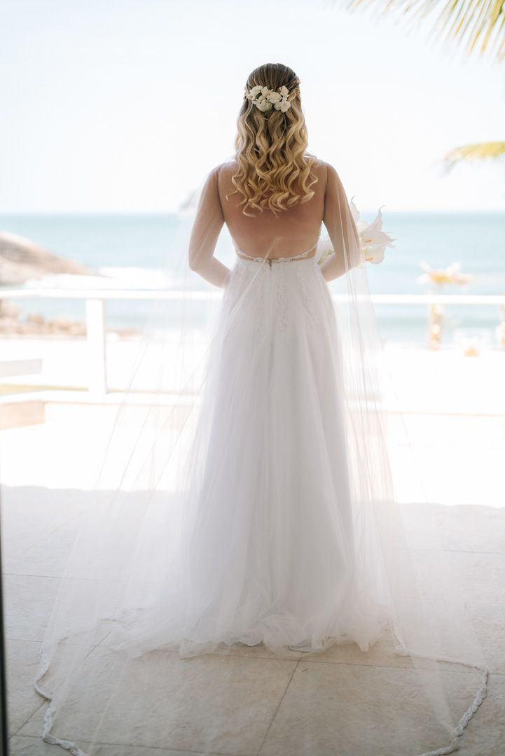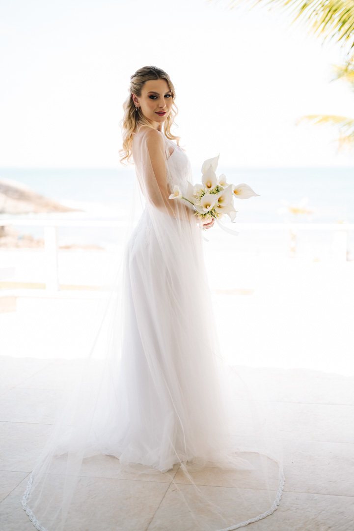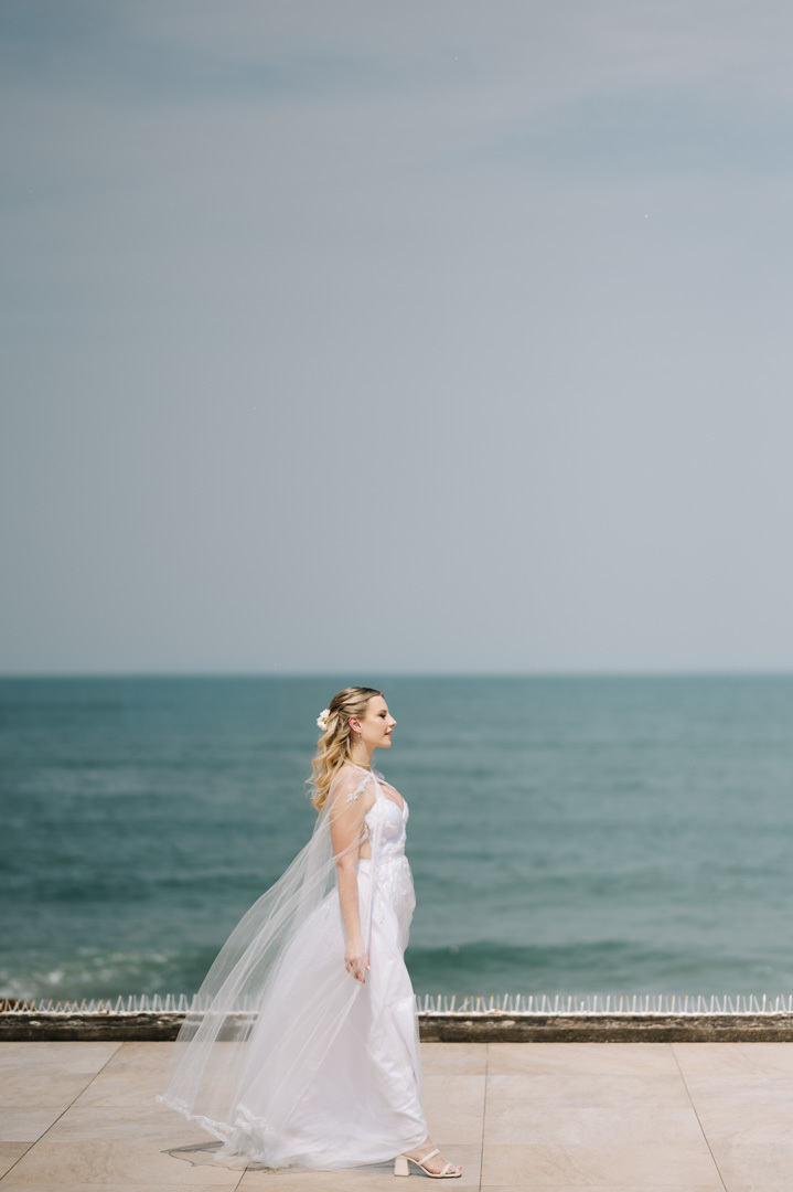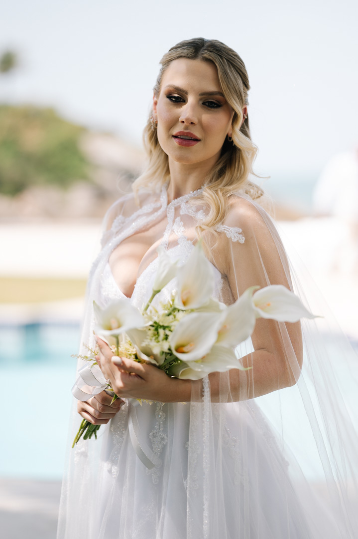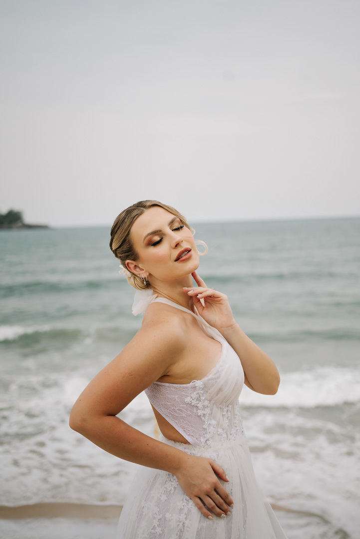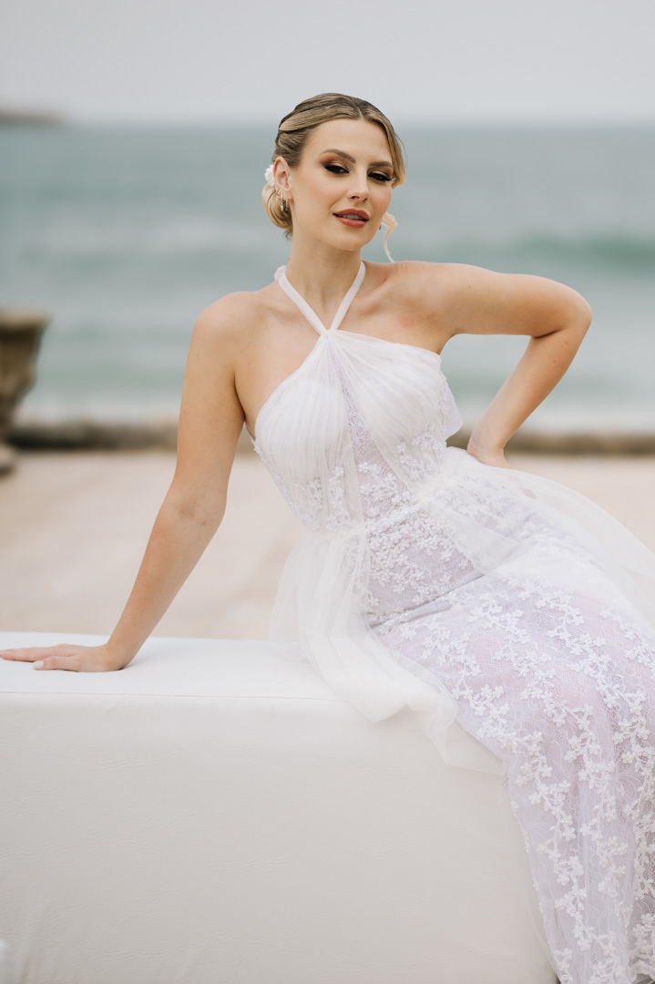 Embora este editorial tenha sido fotografado no Guarujá, ele reflete exatamente a atmosfera que tantas noivas encontram em São Sebastião e Ilhabela – destinos perfeitos para casamentos pé na areia, cheios de charme e romantismo.