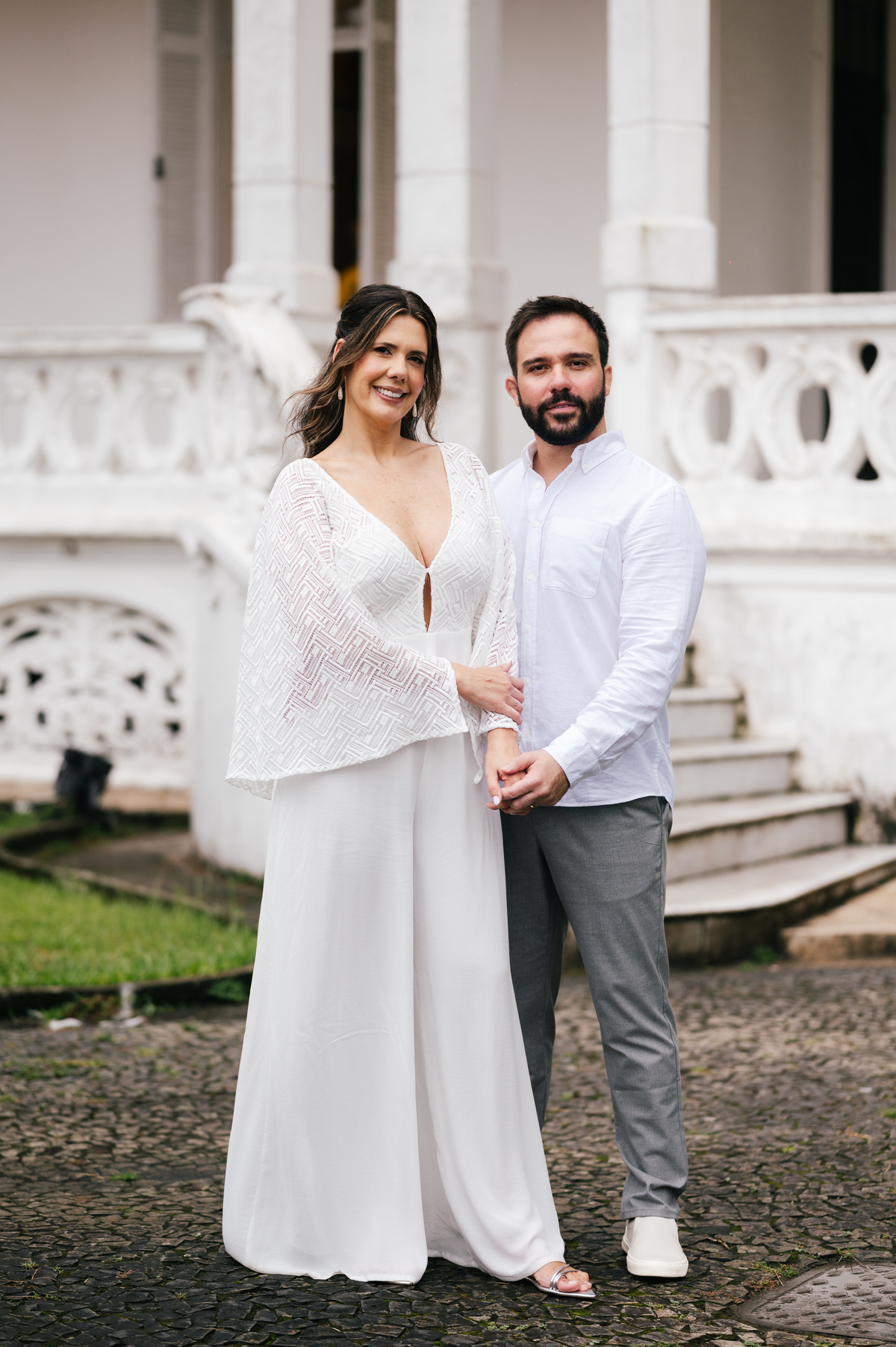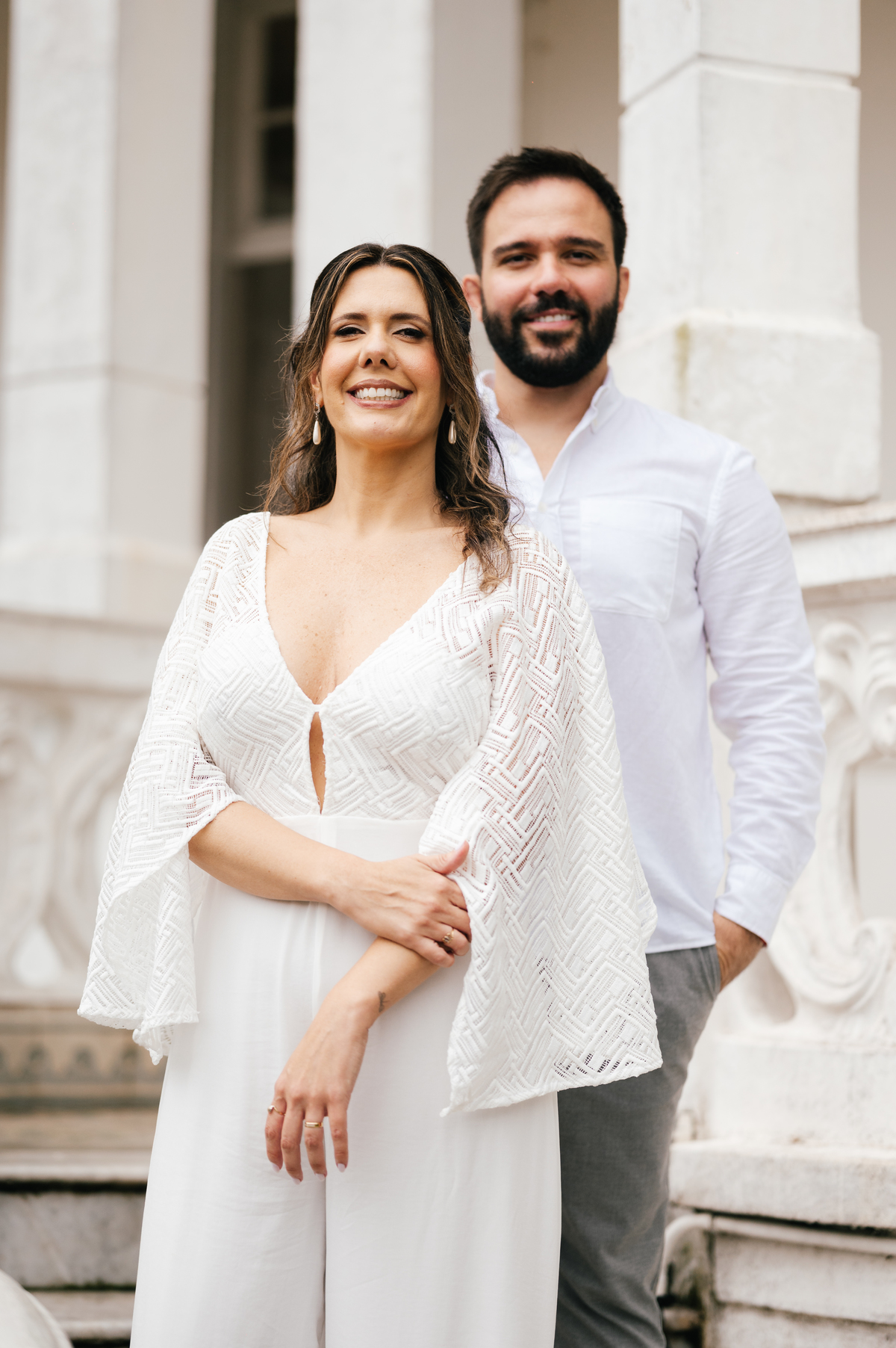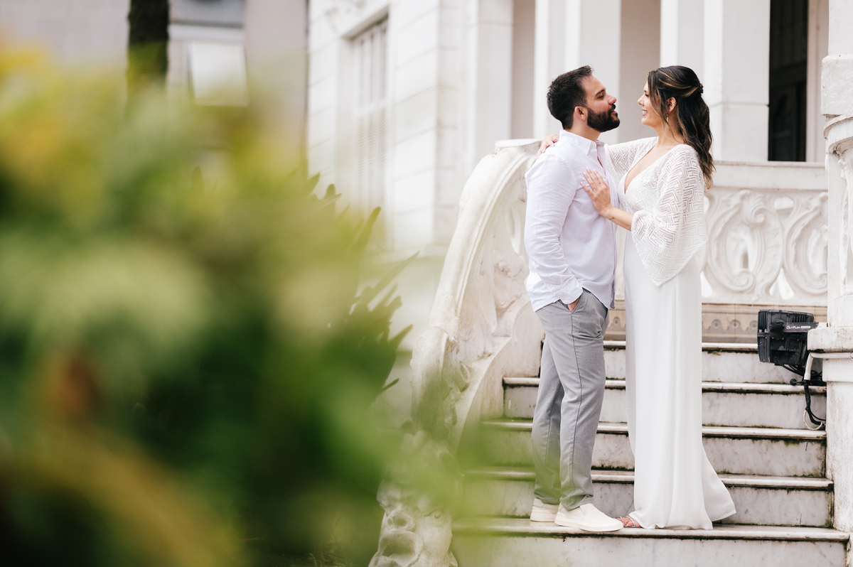 O ensaio após o cartório foi realizado na Pinacoteca Benedicto Calixto, um dos locais mais tradicionais e elegantes de Santos para fotografar casais.