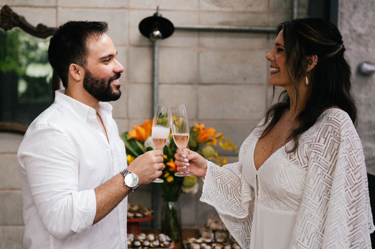 O mini wedding em Santos tem se tornado a escolha perfeita para casais que buscam um casamento íntimo, elegante e cheio de significado. Esse casamento civil começou no cartório, seguiu para um ensaio romântico na Pinacoteca de