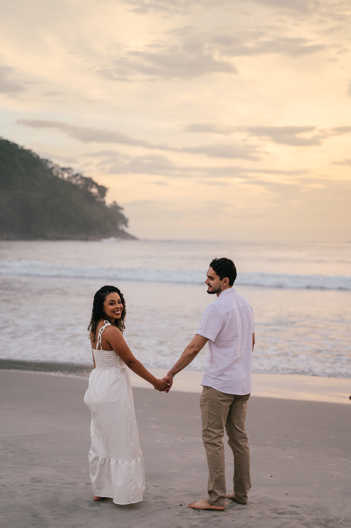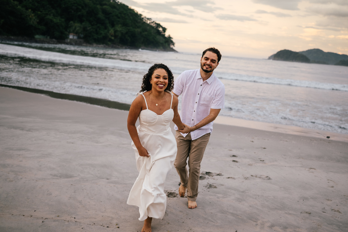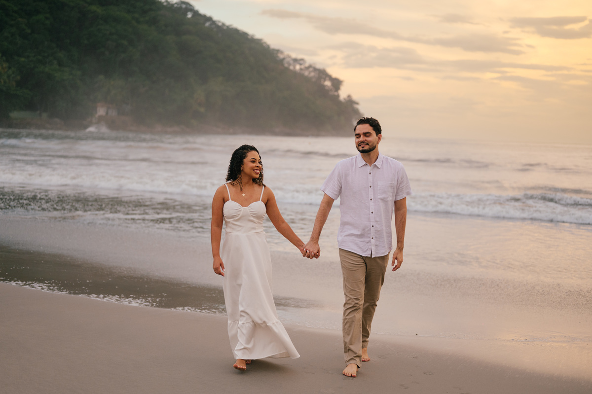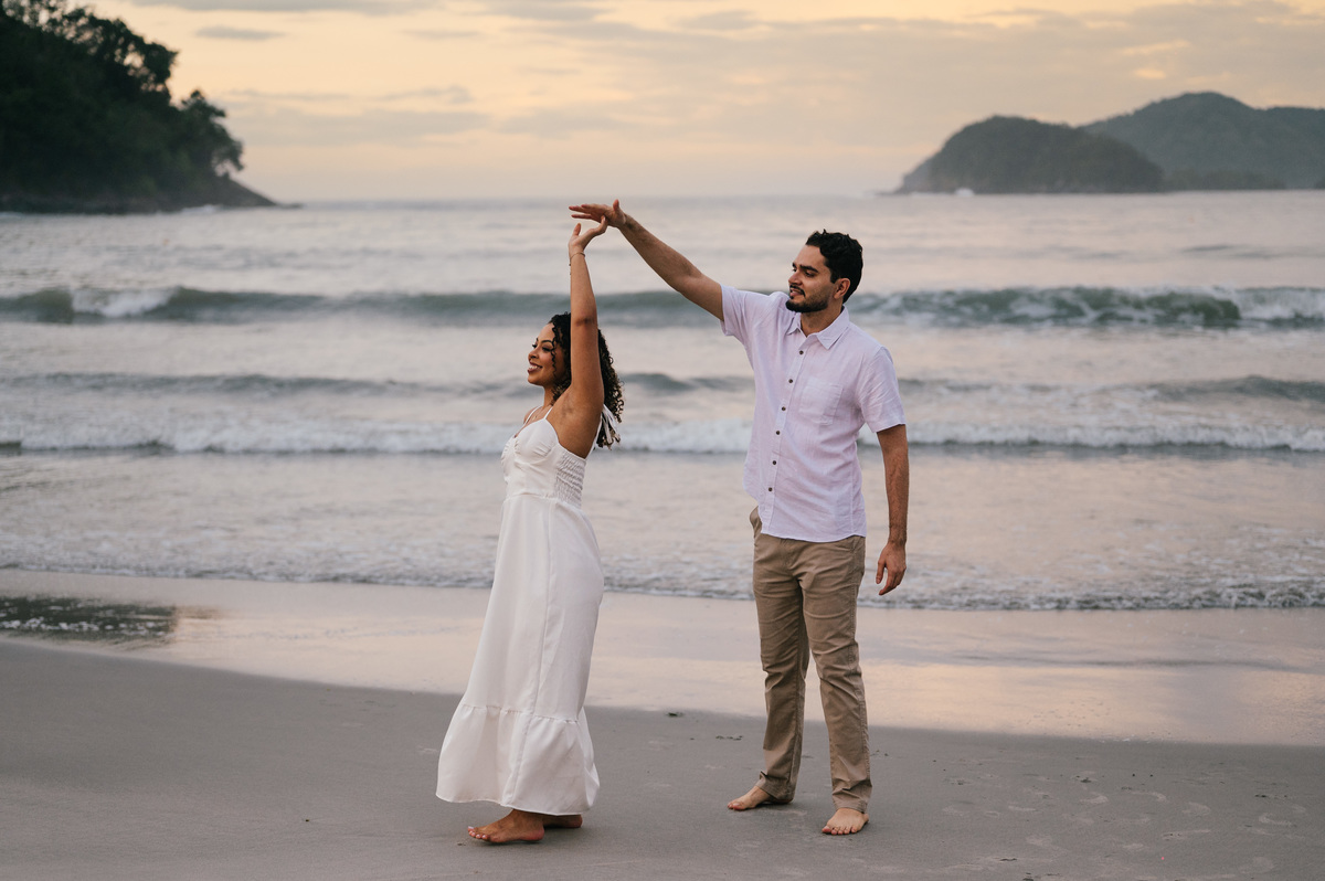 Ainda com a luz tímida surgindo no horizonte, Sarah e Simão chegaram à praia com aquela energia tranquila de quem topou viver algo diferente. O céu começava a clarear, o mar estava calmo e praticamente não havia ninguém por perto. Um cenário perfeito em São Sebastião para um ensaio leve, natural e totalmente conectado com o momento. O amanhecer tem uma magia única — e isso faz toda a diferença no resultado das fotos. A luz suave, quase etérea, envolve o casal de uma forma delicada, criando uma estética limpa, elegante e atemporal. E mais do que isso: cria o ambiente ideal para que tudo aconteça com verdade. O ensaio da Sarah e do Simão deixa claro o quanto o amanhecer pode transformar completamente a experiência e o resultado do pré-wedding. Nos primeiros minutos do dia, a luz é difusa, sem sombras duras. Isso valoriza a pele, os tons naturais e traz uma estética cinematográfica para as fotos. Um dos maiores diferenciais de fotografar cedo na Praia da Barra do Sahy é a tranquilidade. Sem movimento, sem interferências — apenas o casal e o cenário. Temperatura mais amena, vento suave e uma sensação de calma que ajuda o casal a relaxar e aproveitar o ensaio. Acordar cedo pode até parecer desafiador, mas a recompensa vem em forma de um momento exclusivo. É quase como se a praia fosse só de vocês. Com o céu em tons suaves de azul e dourado, começamos o ensaio com uma caminhada pela areia ainda intocada. Sem pressa, sem direção rígida. Sarah e Simão estavam conectados — e isso aparecia em cada detalhe. Um sorriso espontâneo, um abraço mais demorado, um olhar silencioso. São esses momentos que constroem um pré-wedding de verdade. Aos poucos, a luz foi ganhando intensidade, mas ainda mantendo aquela suavidade característica do início da manhã. Aproveitamos diferentes pontos da praia, alternando entre o mar calmo e áreas com vegetação, criando variações naturais no ensaio. O resultado foi um conjunto de imagens leves, elegantes e extremamente autênticas. A Praia da Barra do Sahy já é especial por si só, mas ao amanhecer ela ganha uma nova camada de beleza. O som do mar é mais presente, o vento é suave e a luz cria uma atmosfera quase cinematográfica. Para quem busca um pré-wedding com identidade e sem interferências, esse é, sem dúvida, um dos melhores horários. Além disso, a região de São Sebastião oferece uma combinação perfeita entre natureza preservada e fácil acesso, o que facilita toda a logística do ensaio. Se você se identificou com esse estilo de ensaio, aqui vão algumas dicas importantes: O horário exige um pouco mais de planejamento, mas vale cada minuto. Tecidos fluidos e tons claros funcionam muito bem com a luz do amanhecer. O clima da manhã pede leveza. Aproveite o momento, sem pressa. Mesmo com pouca luz no início, o resultado surpreende. A transição da luz ao longo do ensaio cria uma narrativa única. O pré-wedding da Sarah e do Simão não foi apenas sobre fotografar — foi sobre viver. O amanhecer trouxe uma pausa na rotina, um respiro no meio dos preparativos do casamento. Um momento só deles, em conexão com a natureza e com o que realmente importa. E é exatamente isso que transforma um ensaio em algo inesquecível. Minha abordagem na fotografia é simples: observar e registrar. Sem forçar, sem criar situações artificiais. Apenas estar presente e captar o que acontece de forma natural. O ensaio da Sarah e do Simão é reflexo disso. Um registro real, leve e atemporal, construído a partir da conexão deles e da atmosfera única do amanhecer. Fazer um pré-wedding ao amanhecer na Praia da Barra do Sahy, em São Sebastião, é uma escolha que vai muito além da estética. É sobre viver um momento diferente, em um cenário incrível, com leveza, silêncio e verdade. Sarah e Simão viveram isso intensamente — e o resultado são fotos que não apenas mostram, mas fazem sentir. Se você busca um pré-wedding com identidade, conexão e uma experiência única, talvez o amanhecer seja exatamente o que você procura. Se quiser ver mais ensaios reais como esse e entender como transformar seu pré-wedding em uma experiência única, vale a pena explorar meu trabalho e descobrir novas possibilidades no litoral norte de São Paulo.Por que fazer um pré-wedding ao amanhecer?