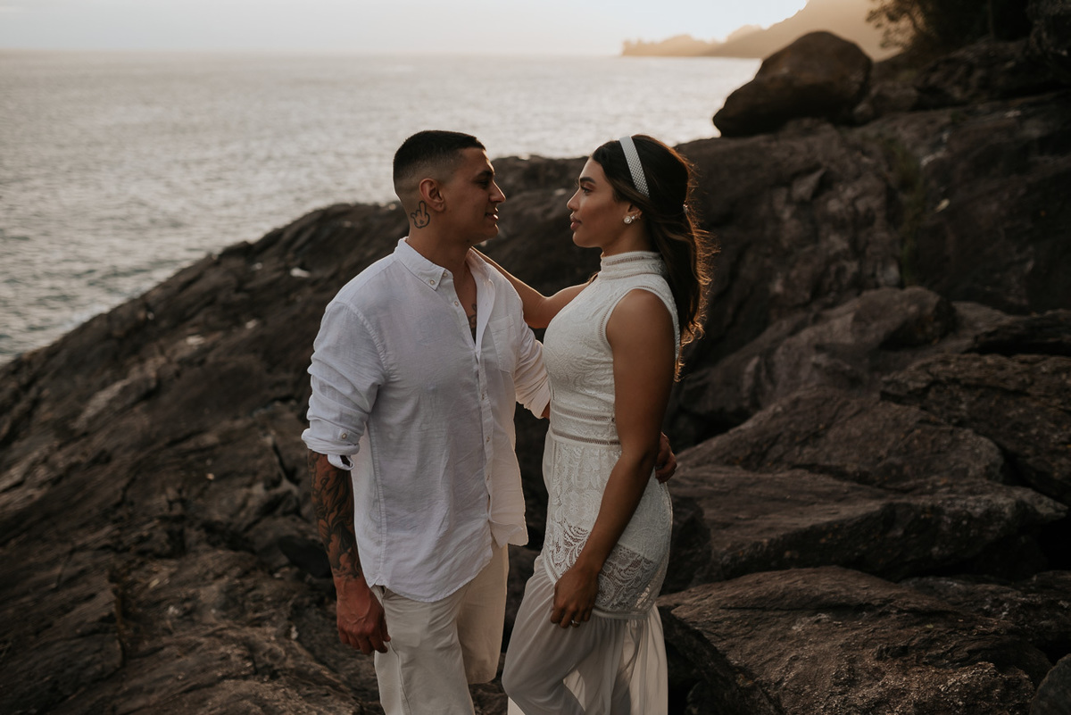 Logo depois da cerimonia fizemos um ensaio super lindo na praia e nas piscinas naturais com a chegada de um por do sol maravilhoso