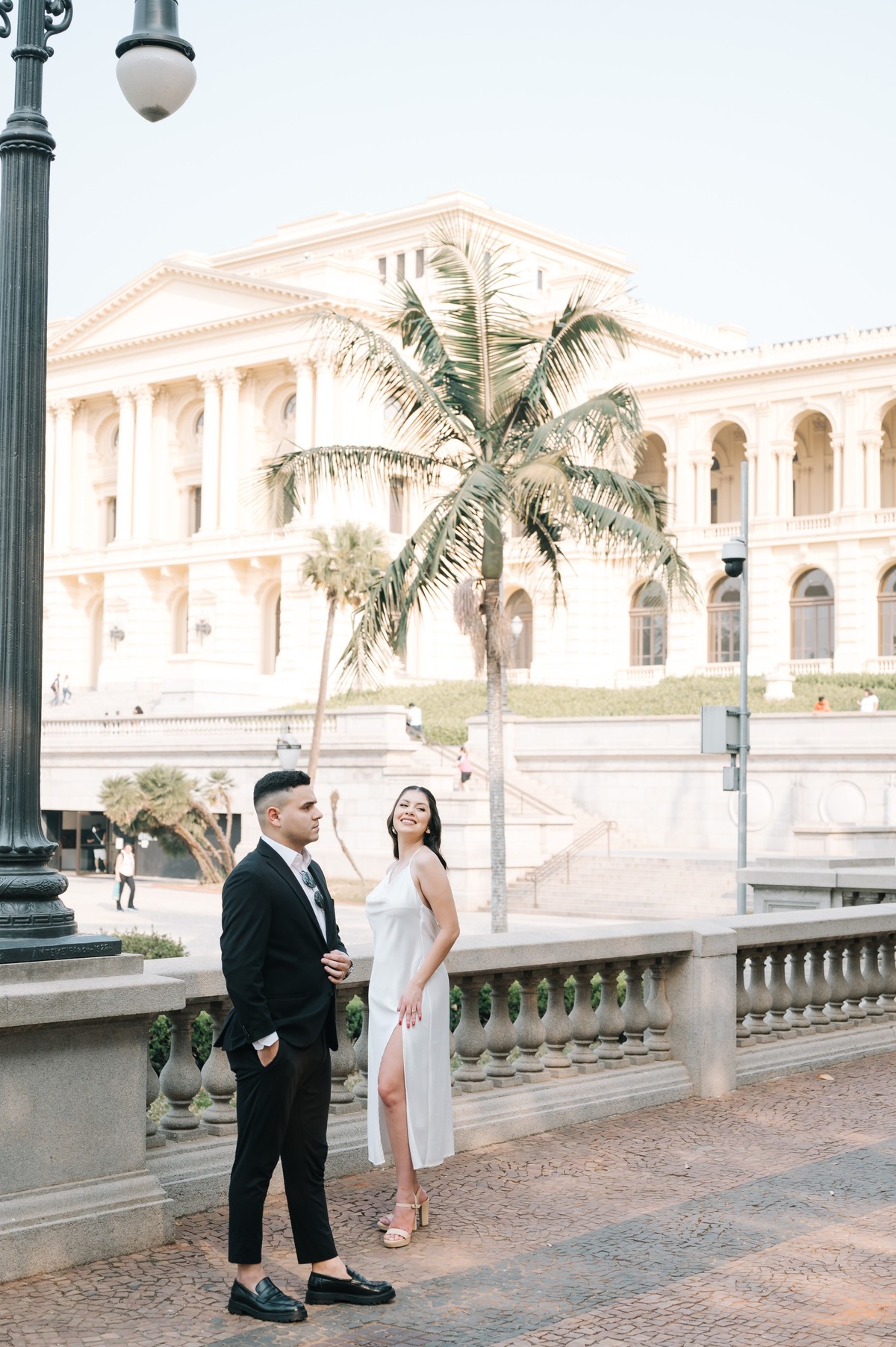 O estilo de fotografia adotado nesse *pré-wedding no Museu do Ipiranga* foi o clássico, onde a naturalidade e a espontaneidade se encontraram com poses discretas e bem elaboradas. Para casais que buscam um visual mais atemporal, o museu é o cenário perfeito. A simetria dos jardins e a imponência das fachadas proporcionam uma harmonia visual incrível, que só adiciona charme às fotos.