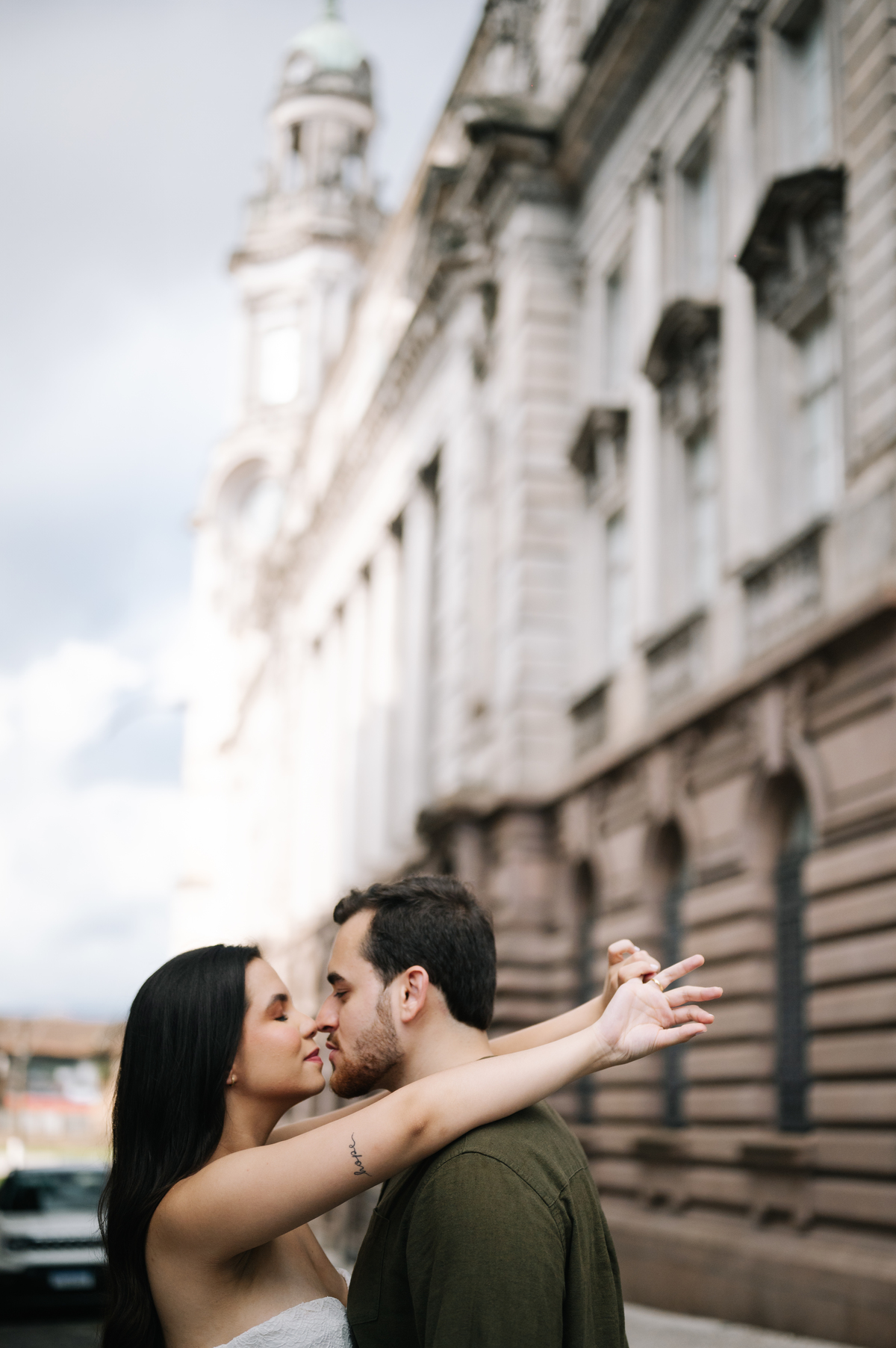 A história e a arquitetura do Centro Histórico de Santos foram o cenário perfeito para o ensaio da Gi e do Matheus. Cada canto traz um charme único, e nós aproveitamos ao máximo as composições que esses detalhes nos proporcionaram.