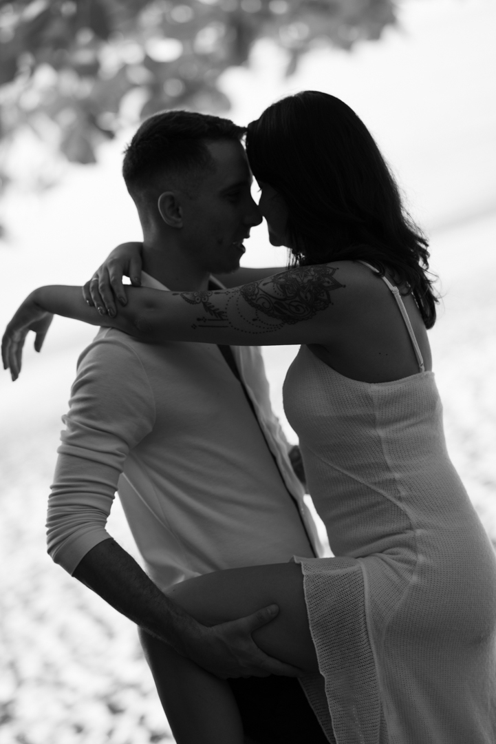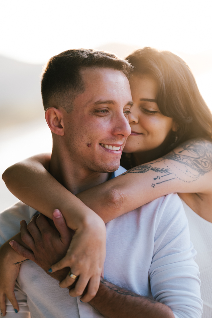 Durante o ensaio, a proposta foi registrar a essência da Alline e do Vinícius de forma leve e verdadeira: caminhadas descalços na areia, gestos espontâneos, conversas e risadas. Sem poses engessadas, seguindo uma abordagem de fotografia documental de casamento, onde cada imagem conta uma parte real da história do casal.