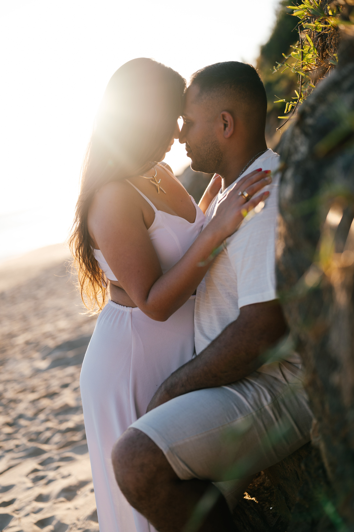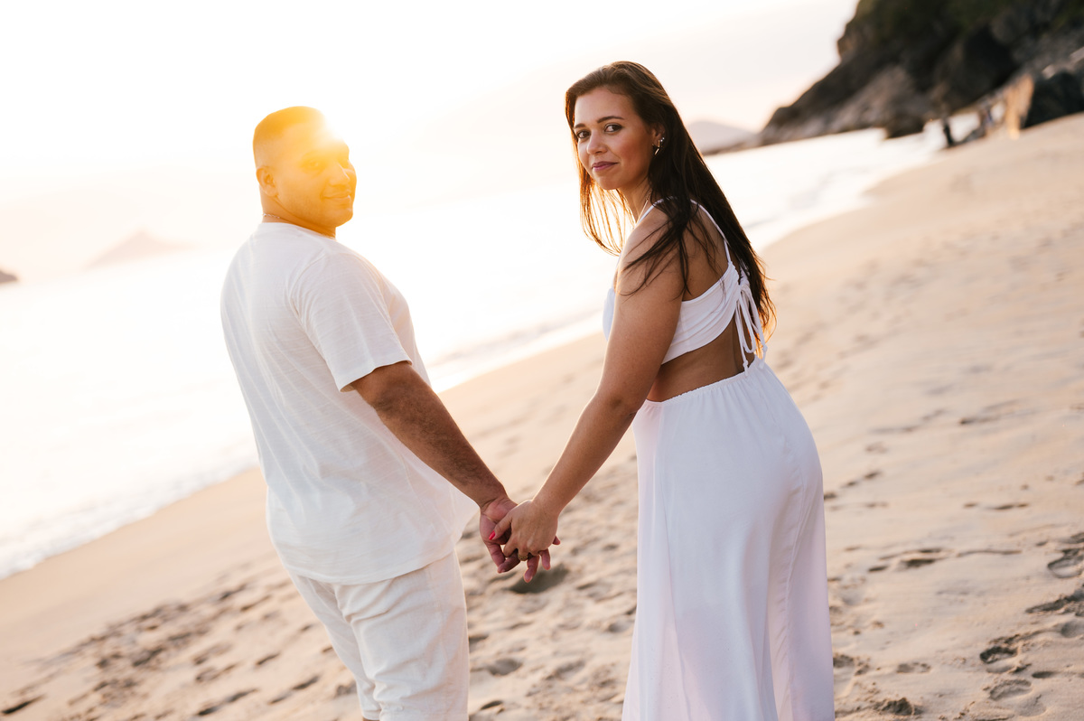 Meu estilo é documental, natural e com alma. No pré-wedding ao pôr do sol em Boiçucanga, a ideia não é forçar poses ou transformar o ensaio em algo engessado. Eu quero que o casal viva o momento, caminhe pela areia, curta a vista, converse, sorria, abrace… e as fotos acontecem naturalmente.