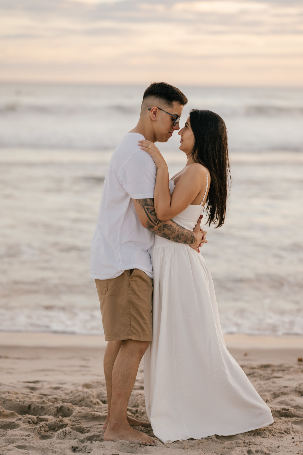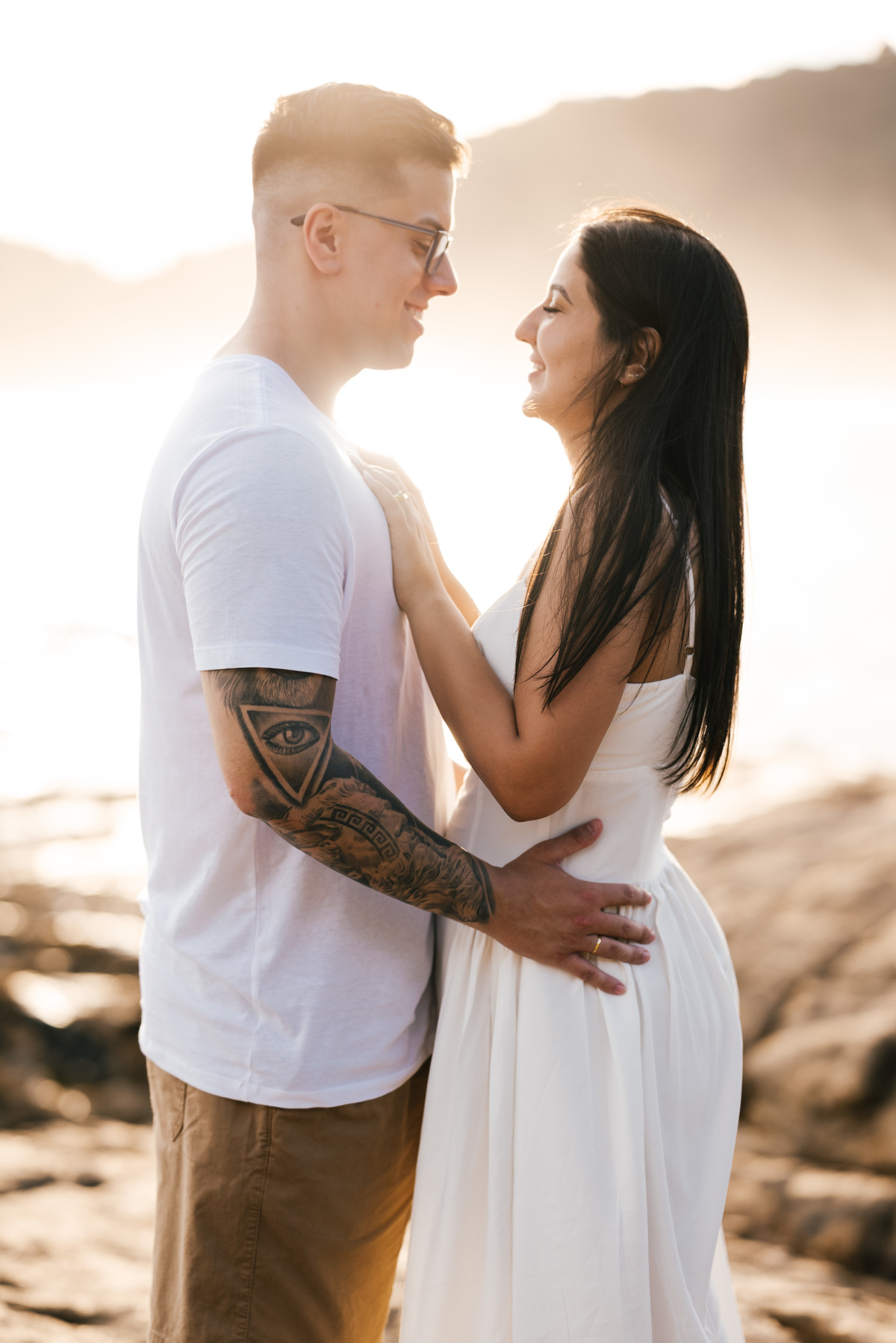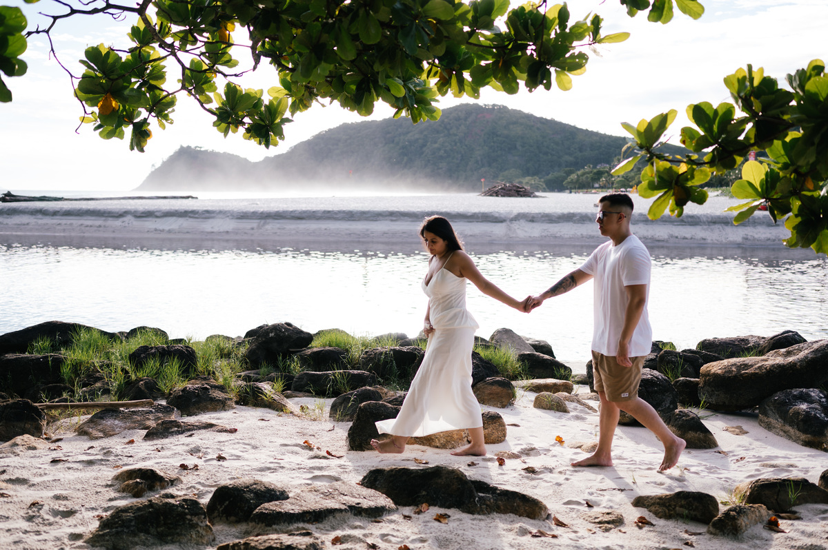 O pre wedding em Cambury, especialmente durante o entardecer, se tornou um dos ensaios mais desejados pelos casais que procuram um fotógrafo no litoral norte de São Paulo. A praia de Cambury oferece uma combinação perfeita: mar aberto, faixas de areia amplas, vegetação nativa e uma luz dourada que transforma cada foto em algo único e atemporal.