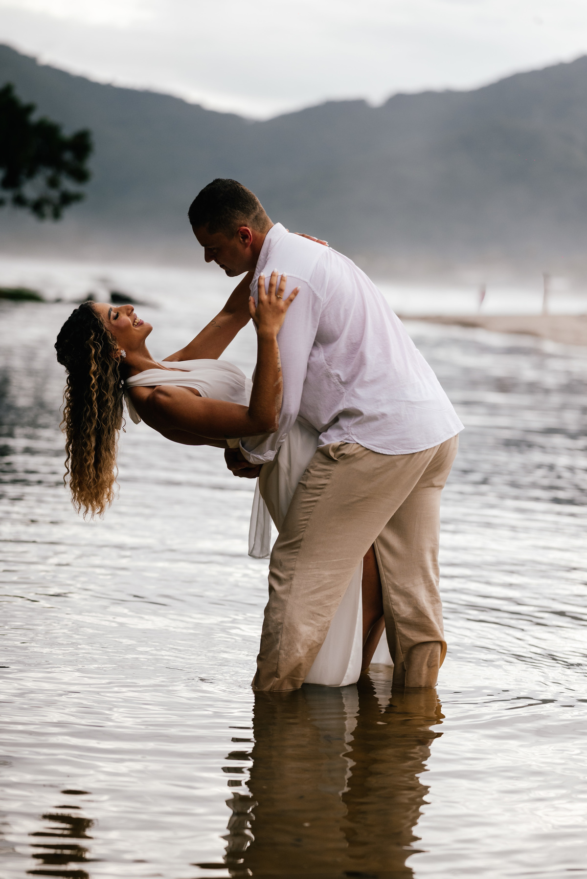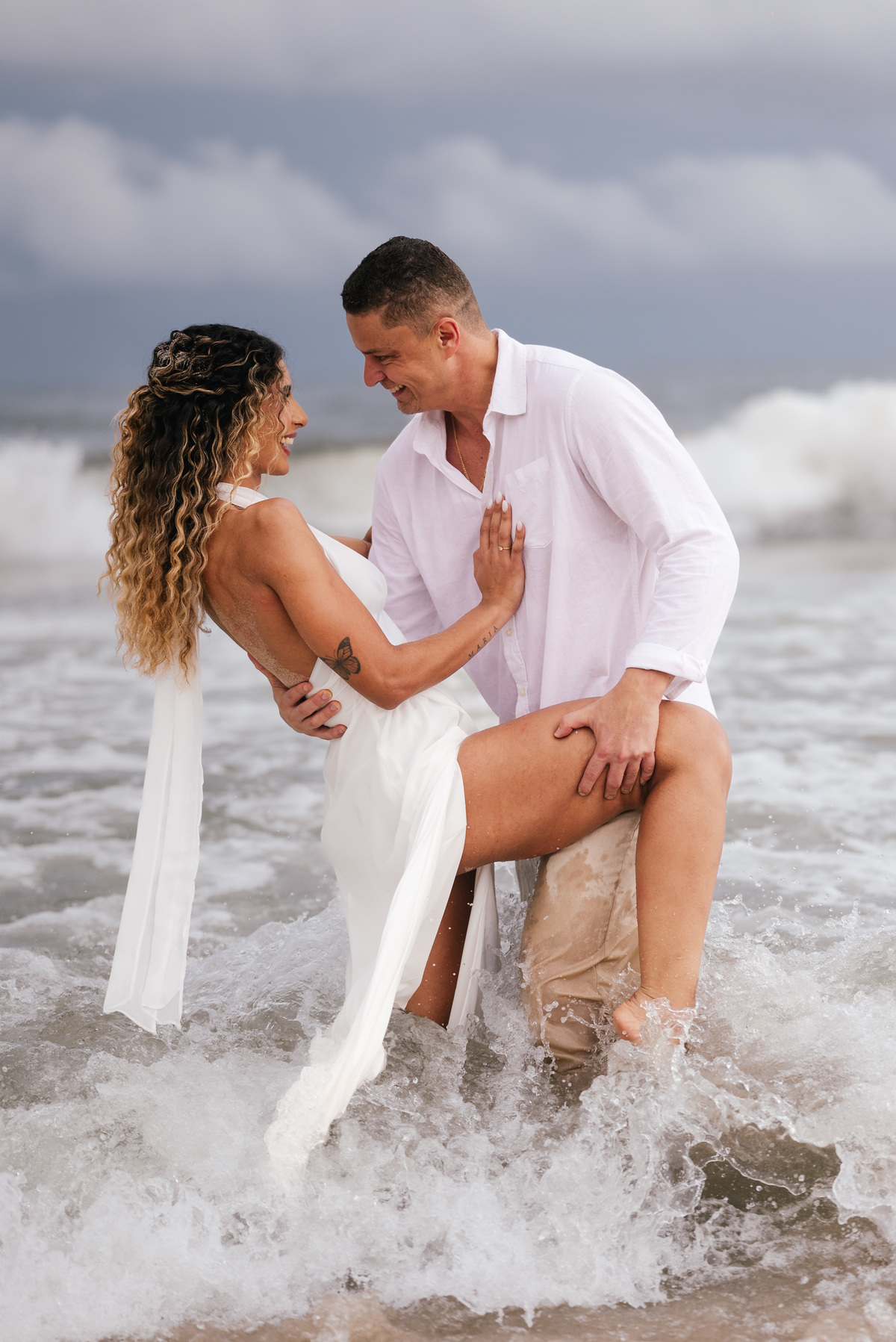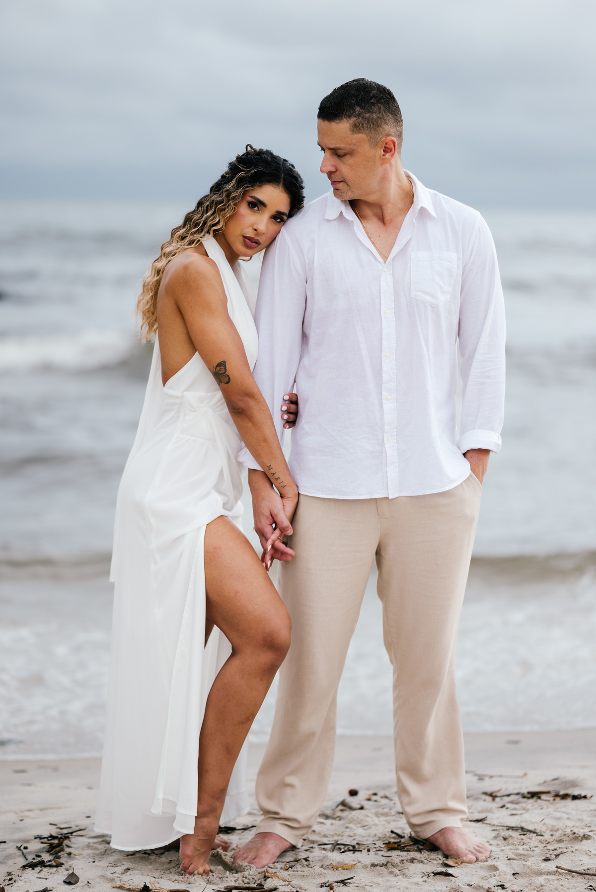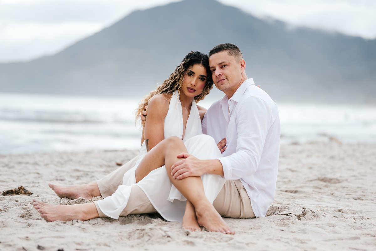 Existem ensaios que acontecem como o esperado — sol, céu limpo, luz dourada. E existem ensaios como o da Pollyana e do Rick, que surpreendem justamente por entregarem algo totalmente diferente, natural e autêntico. Em um final de tarde nublado em Maresias, sem aquela luz dramática de pôr do sol, o ensaio ganhou uma atmosfera cinematográfica, suave e intensa ao mesmo tempo.