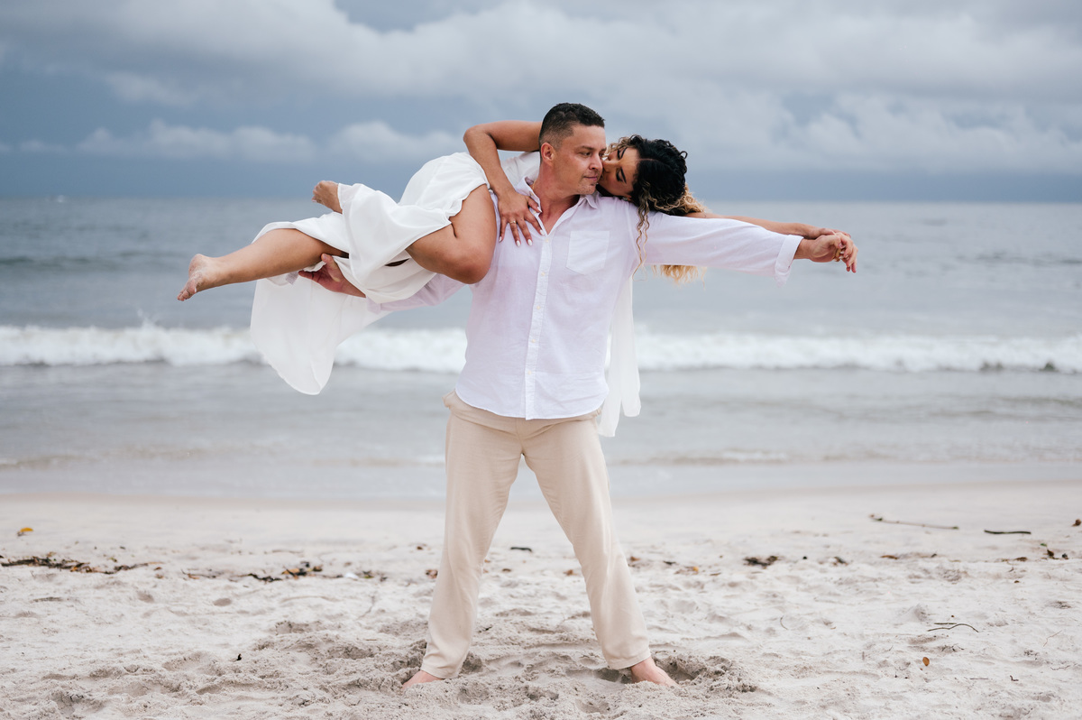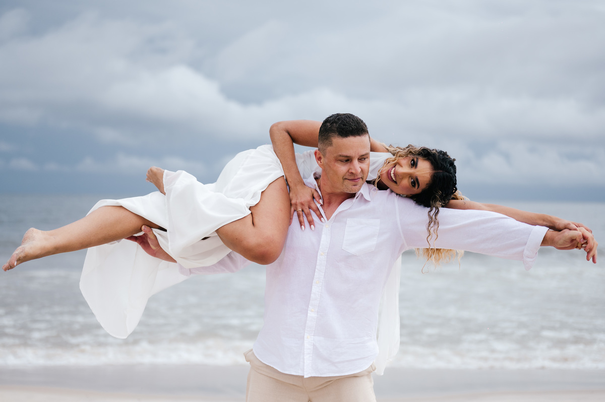 Para muitos casais que vêm de São Paulo e do interior em busca de um ensaio pré-casamento no litoral norte, o medo do tempo nublado é comum. Mas a verdade é: nuvens podem transformar completamente o clima das fotos — e para melhor. Foi exatamente isso que aconteceu com a Polly e o Rick.