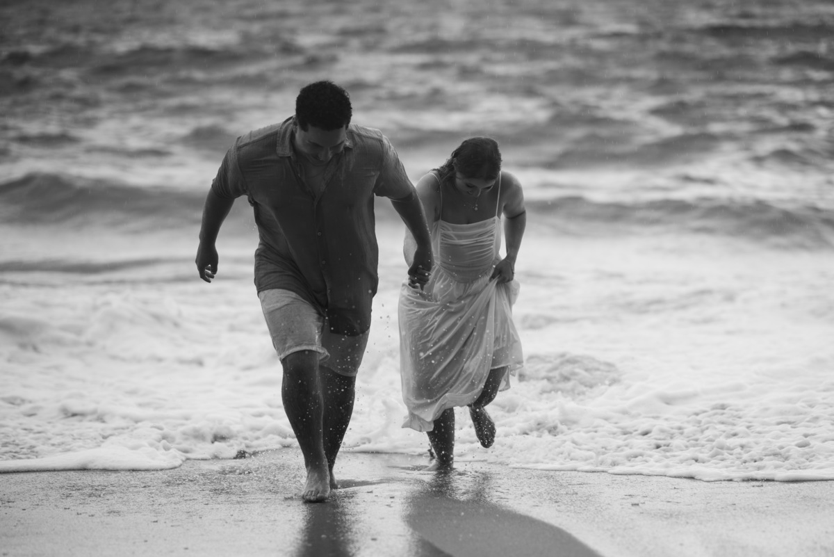 Se você está procurando ideias para ensaio pré-wedding em Boiçucanga, esse ensaio da Amanda e do Davi vai te mostrar que não existe tempo ruim quando a conexão é verdadeira.