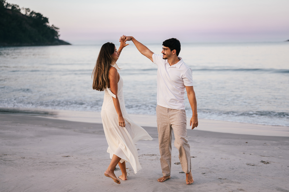 Para quem busca um ensaio pré wedding na praia em São Sebastião com estética natural, o amanhecer é uma das melhores escolhas.