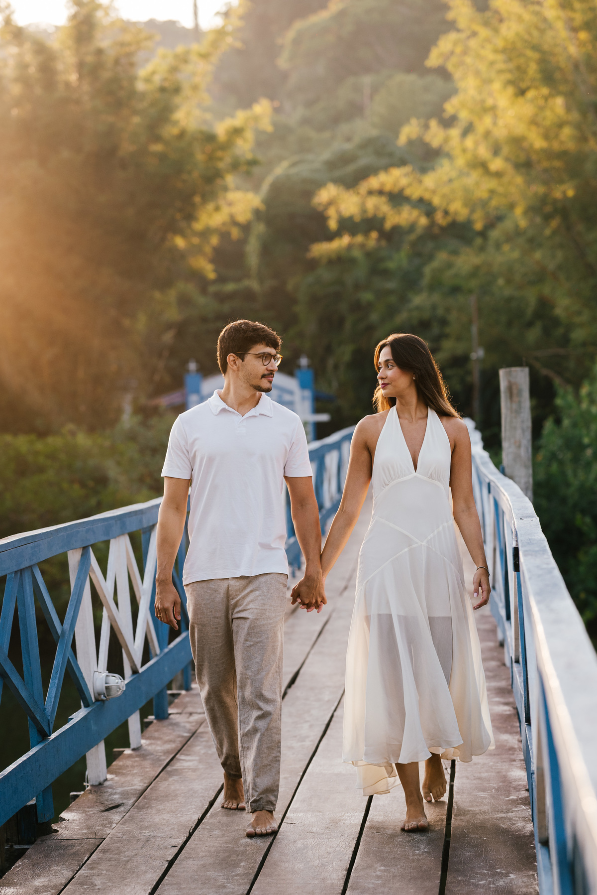Os ensaios são pensados de forma leve, respeitando o tempo do casal, a luz ideal e o estilo de cada história.